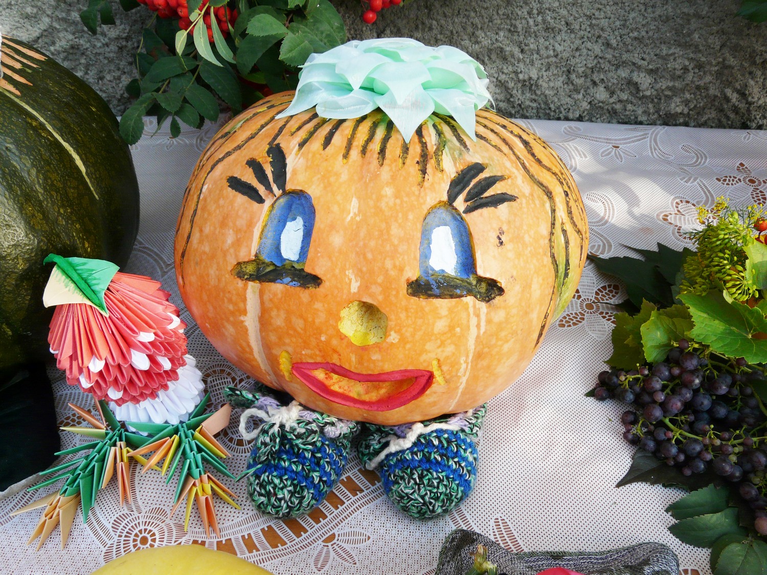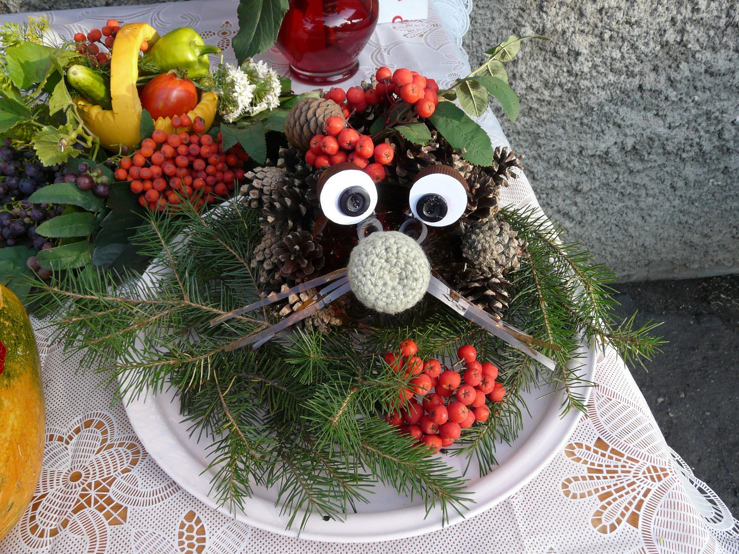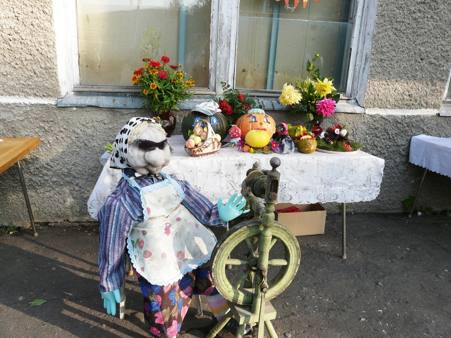 9.40.Желанное. У Дома культуры звучит веселая музыка, пожалуй, это первый участок, где чувствуется другое настроение. На столиках разложены композиции из овощей.