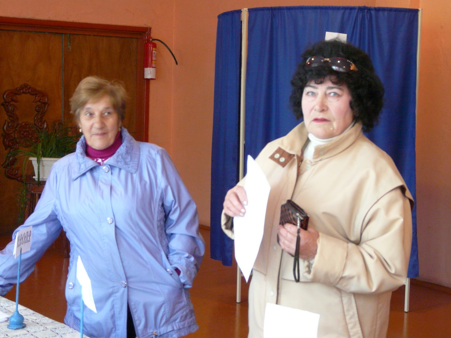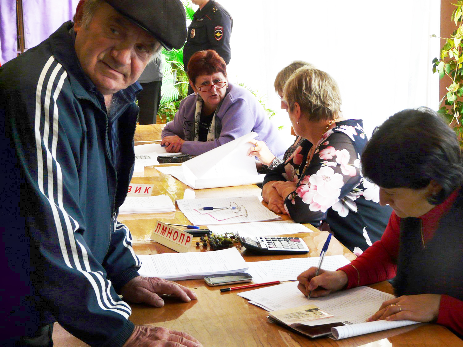 - С утра без конца приставали с вопросами и рекомендациями. Сейчас уже немного успокоились,- говорит Наталья Николаевна. - Благодаровцы огороды копают. Приходят потом целыми семьями. Сейчас уже 55,3% проголосовали. Первым пришел Владимир Щепелев.