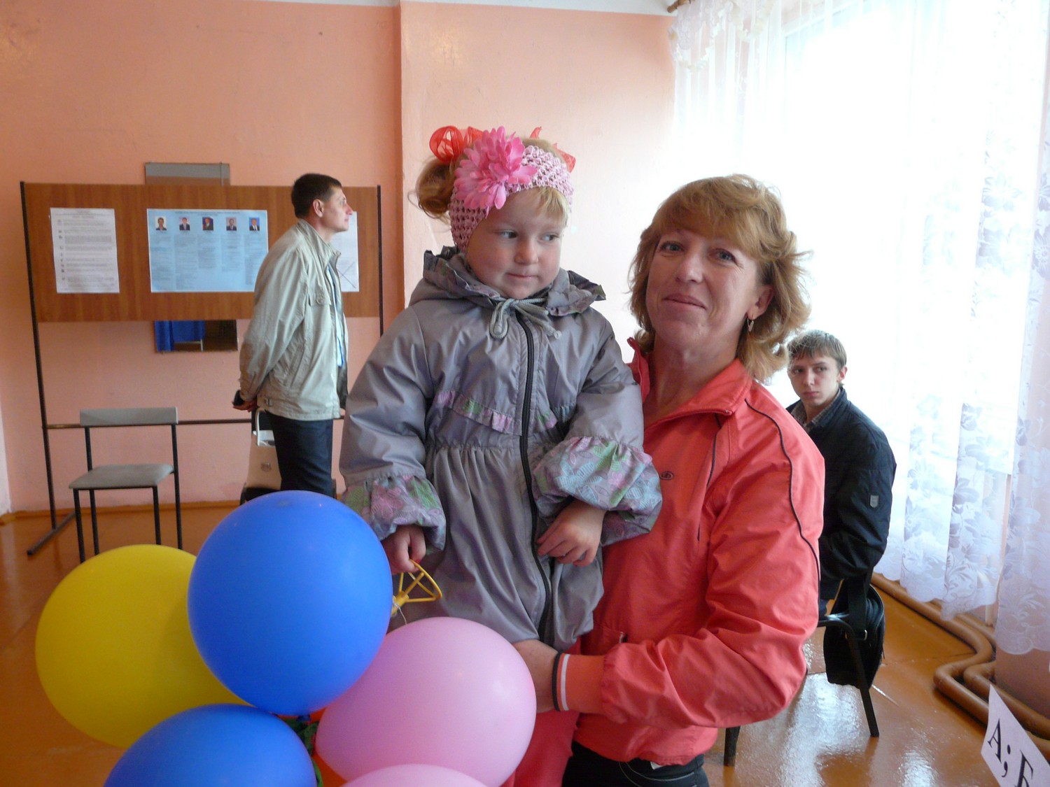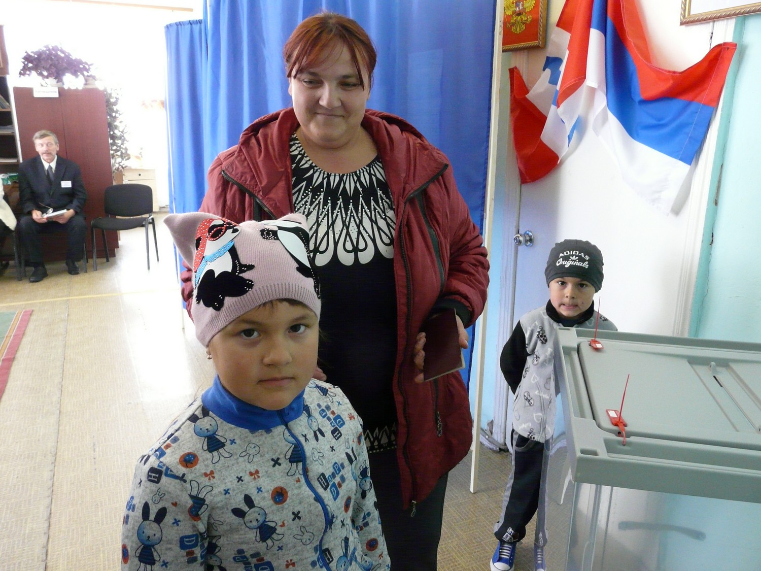 Избирателей, действительно, нет. Около 60% уже проголосовало. Наконец, приходит женщина с двумя детьми. Это Л.Н. Умарова с сыном Даниилом и дочерью Дианой. Фотографирую и думаю, я ведь ее уже снимала при голосовании.