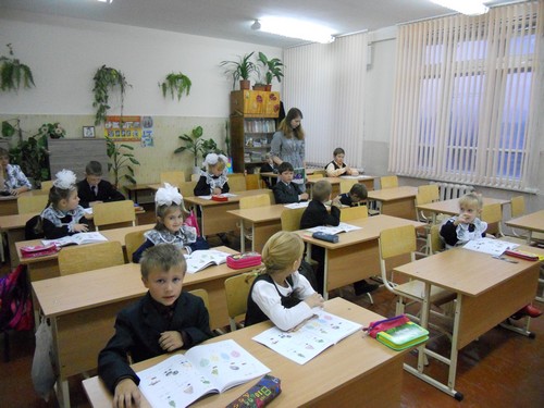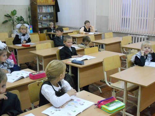 На фото: первоклассники Одесской школы № 1, педагог Л.Н. Дорошок