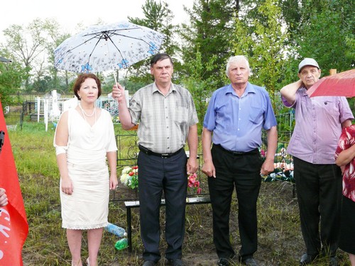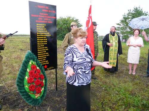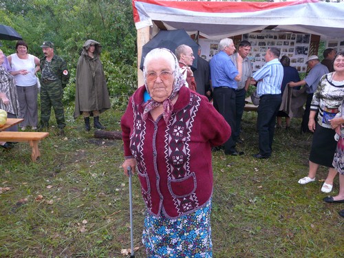 Ольга Владимировна Мизиряк, потомок большой семьи, собственноручно готовившая огромный плакат, не могла отвечать на вопросы – расстроилась, что из-за дождя весь труд пошел насмарку - расплылись надписи, намокли фотографии: