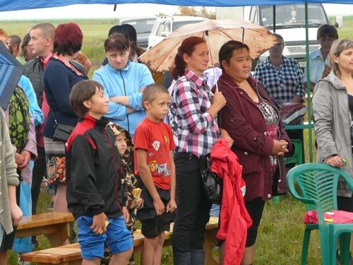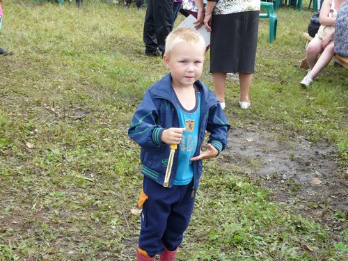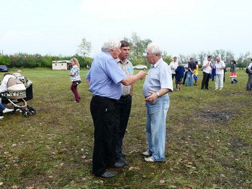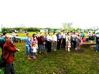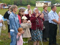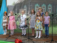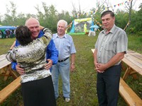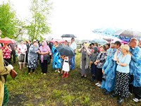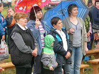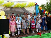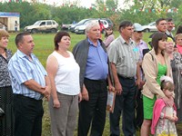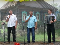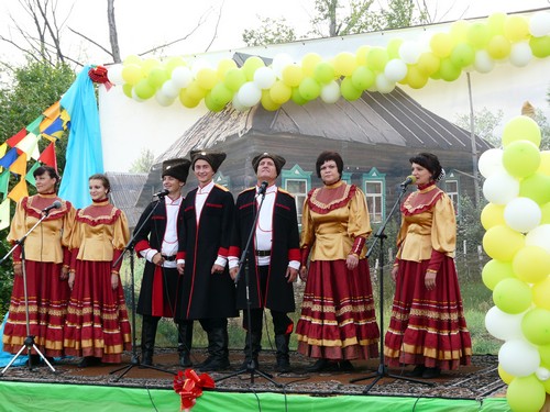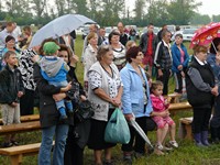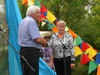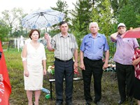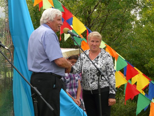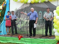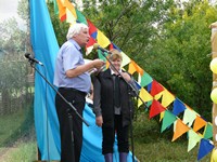 Немного намокшие песчанцы и гости собрались у летней сцены послушать, как поют, что говорят их земляки. Поздравил песчанцев с праздником, глава Лукьяновского казачьего поселения Д.П. Мацук:
