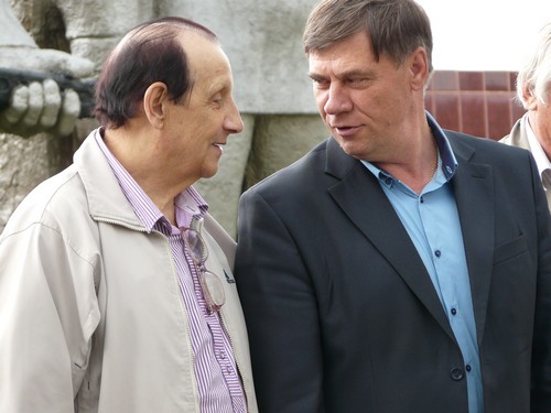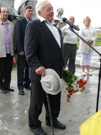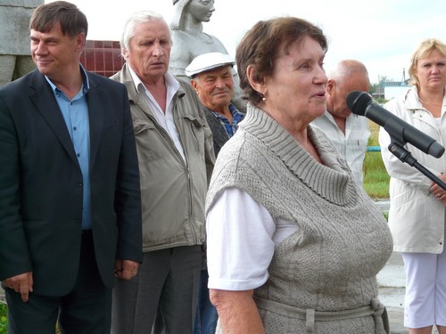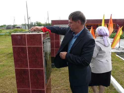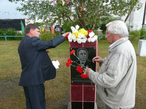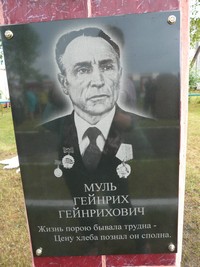 Сын Гейнриха Гейнриховича Муля Виктор Генрихович и внучка Ирина Гарриевна открыли памятный знак своему отцу и деду, кавалеру ордена Ленина, заслуженному работнику совхоза "Комсомольский".