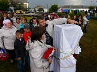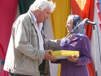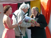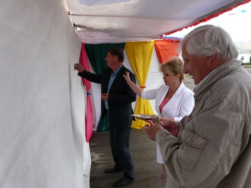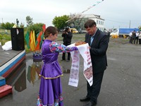 И вот начался праздничный концерт на летней сценической площадке перед ДК. Сельчане слушали народные и милые сердцу напевы. Почетного гостя - главу Одесского района Валерия Николаевича Корнейчика - встретили караваем. Он поздравил сельчан с праздником и объявил: подарком на день рождения села будет баян за 180 тысяч рублей.