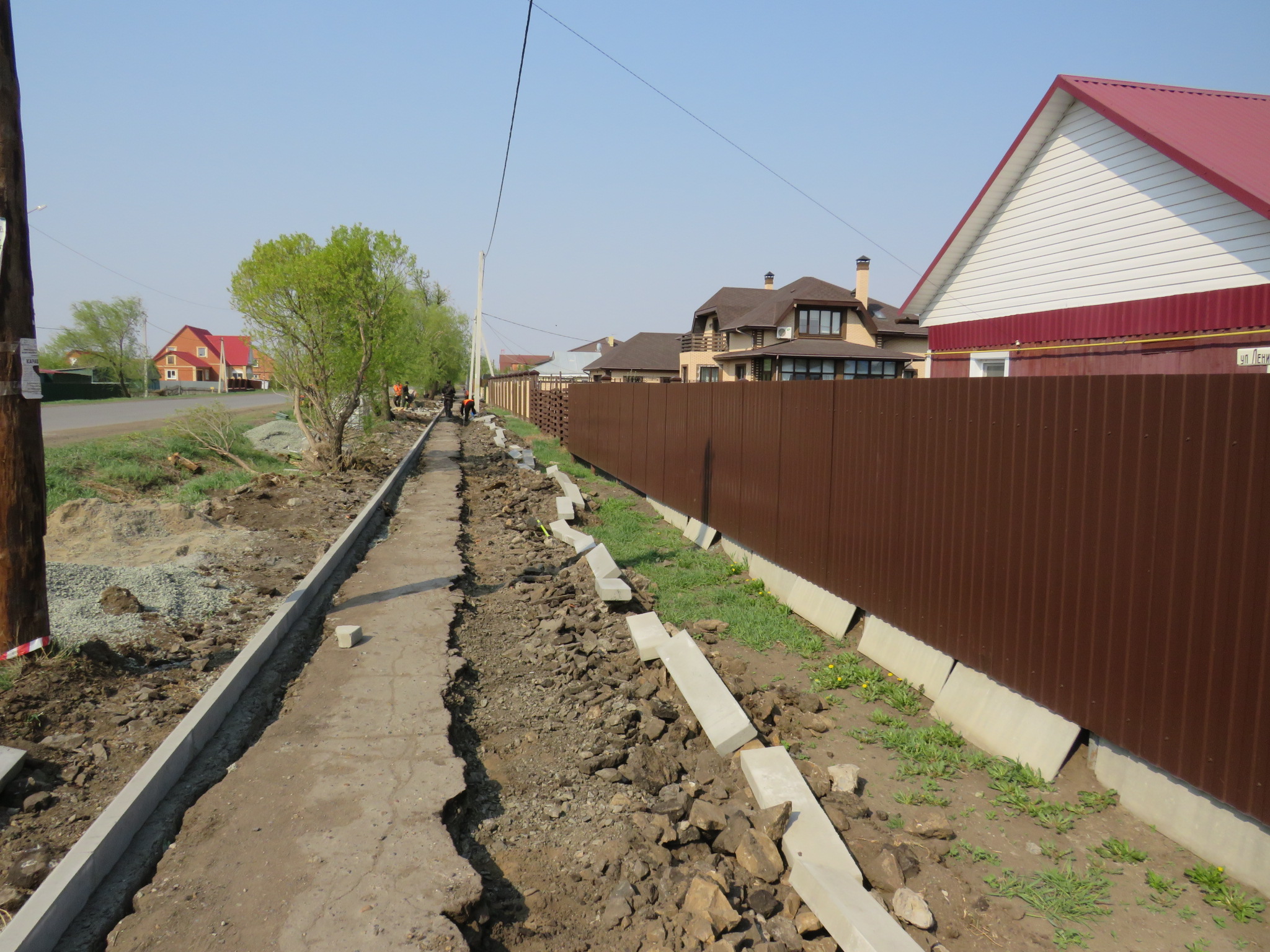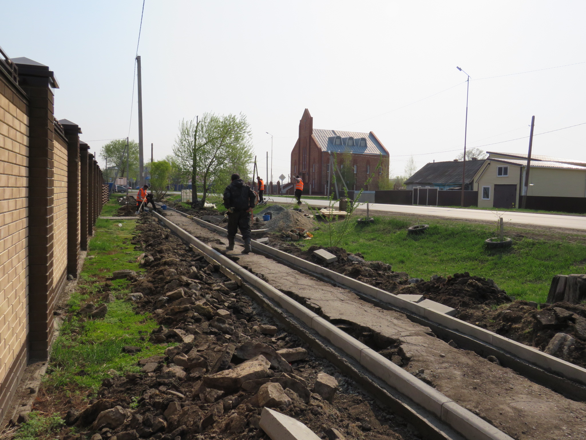 С 5 мая рабочие подрядчика – строительной кампании «Армада» - приступили к обустройству тротуара по ул.Ленина в Одесском. Всего по программе «Формирование комфортной городской среды» будет проложено 2 км 200 метров тротуара. Работы начаты от ул.Одесской. Тротуар идёт по правой стороне улицы вдоль заборов домов до пер.Степной, далее – выйдет наверх и будет проложен вдоль трассы на Белосток, с заходом на остановку общественного транспорта и дальше – до пограничного городка. Как мы уже писали в газете, в трёх местах будут обустроены «карманы» и установлены скамейки для отдыха. Общая стоимость проекта - около пяти миллионов рублей.