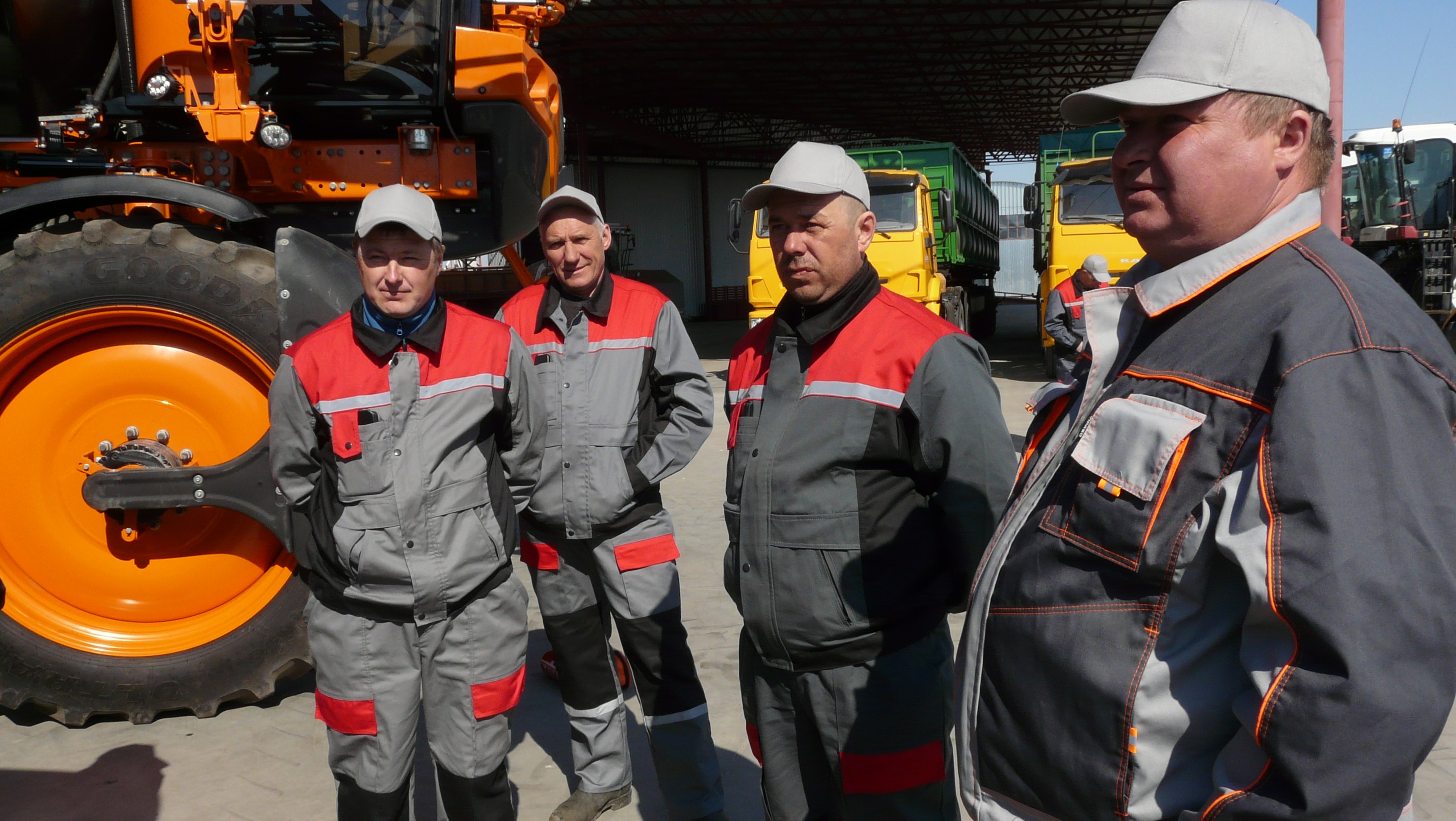 Мы познакомились с героями этой публикации на показательном техосмотре в КФХ. Здесь было на что посмотреть. На производственной базе нет ни пылинки - весь двор устлан плитами, новейшая, вымытая до блеска техника стоит в крытом ангаре, рабочие одеты в новую спецодежду.