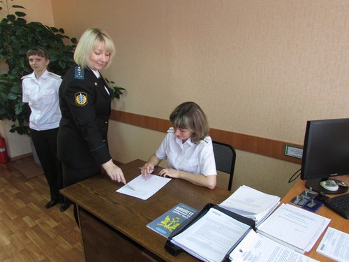 Встретила корреспондента молодая женщина со строгим поставленным голосом и ироничным взглядом добрых глаз - начальник отдела Наталья Викторовна Брух, советник юстиции II класса. Она работает у нас в Одесском третий год, уезжая домой, к родителям в Омский район, только на выходные.