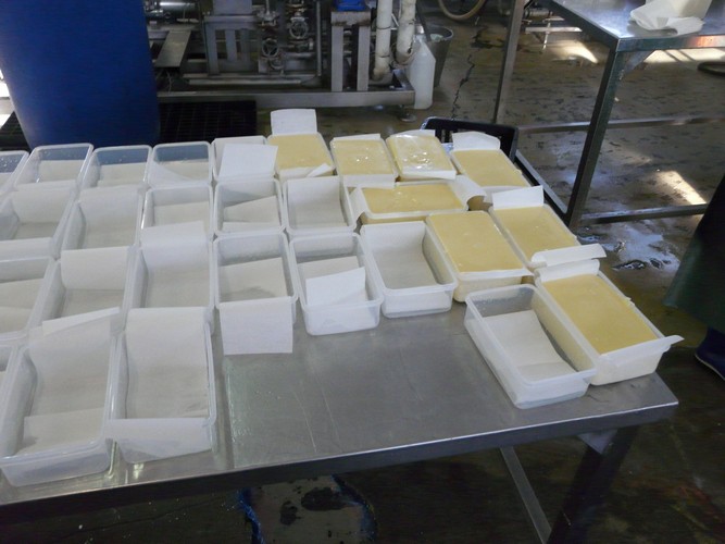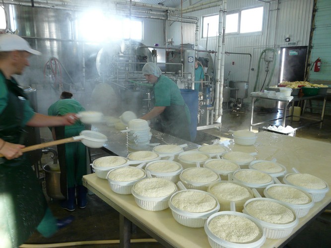 - Это сыр обезжиренный, - продолжает Олеся, - его мы делаем тоже сами, специально для варки плавленого сыра.