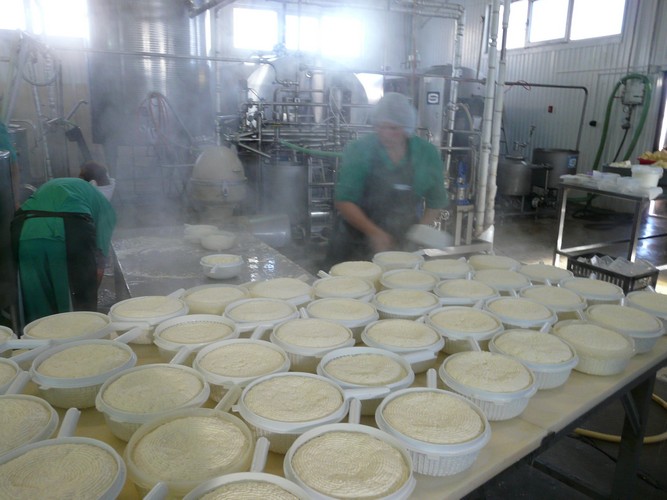 Я бы не сказала, что способ дедовский. Процесс: температура, время варки и остановки контролируются на специальном щитке, хотя, конечно, все кнопки надо нажимать вручную, руками загружаются в котел и все составляющие сыра.
