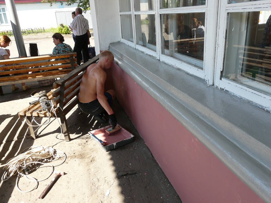 Идет капитальный ремонт в соседнем помещении, рядом с залом ожидания. Сюда завезены стеллажи и новые витрины. Вход с торца здания ведет в теплый туалет, который будет работать в платном режиме.