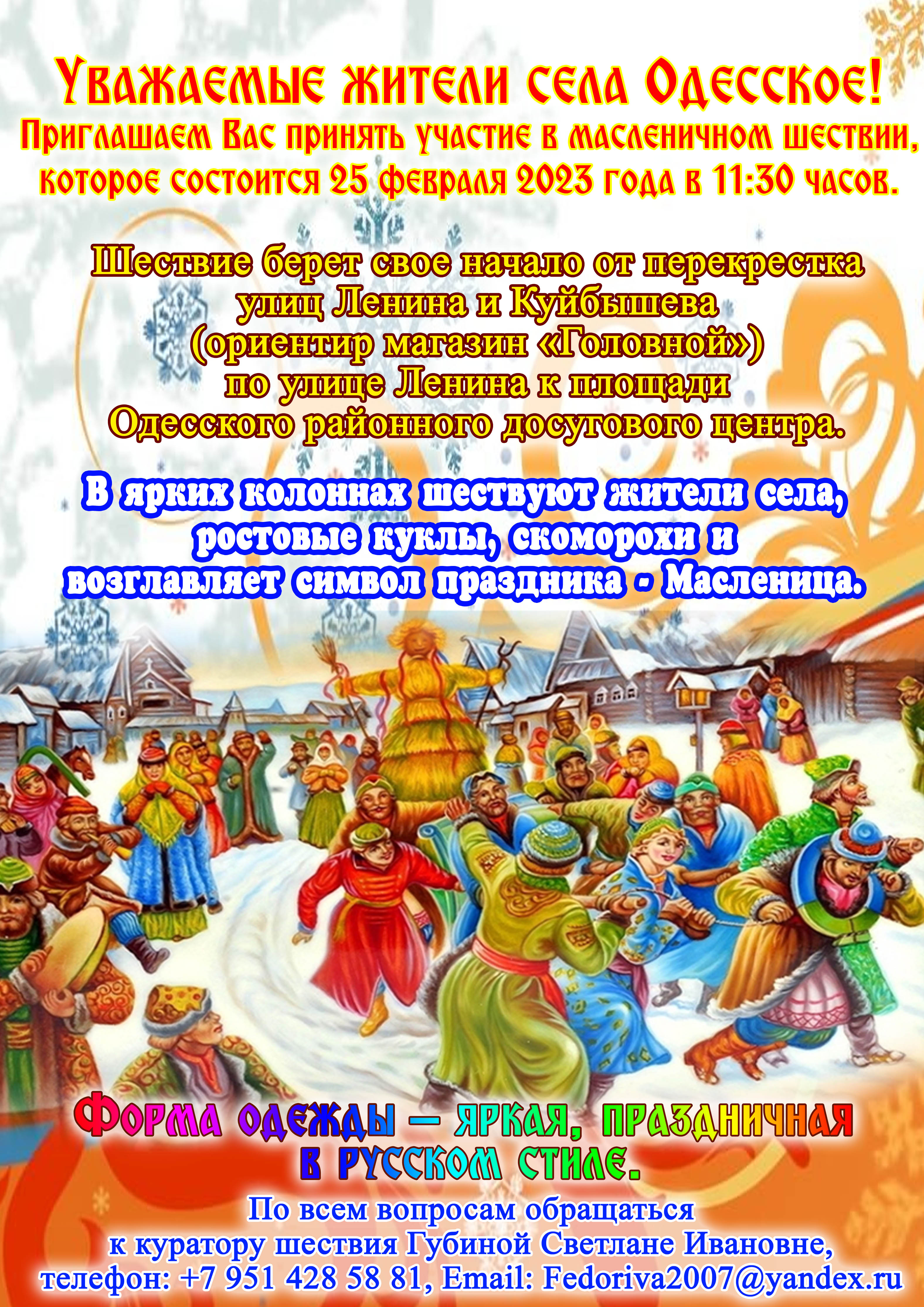 Уважаемые жители Одесского района! Приглашаем вас принять участие в масленичном шествии