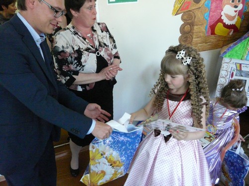 Детям и дошкольному учреждению подарили подарки приобретенные на средства спонсора Е.Шнайдера, главы поселения А.К. Шпраера и родителей детей посещающих заведение.