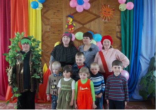 Неожиданно для всех в зале появляется весёлый Карлсон и предлагает завести его моторчик и полетать вместе с ним. Данил, Саша, Коля очень рады этим полётам. Всем, кто хотел, удалось прокатиться с Карлсоном. Эту роль выполняла – заведующая сельской библиотекой Татьяна Васильевна Мовчан.