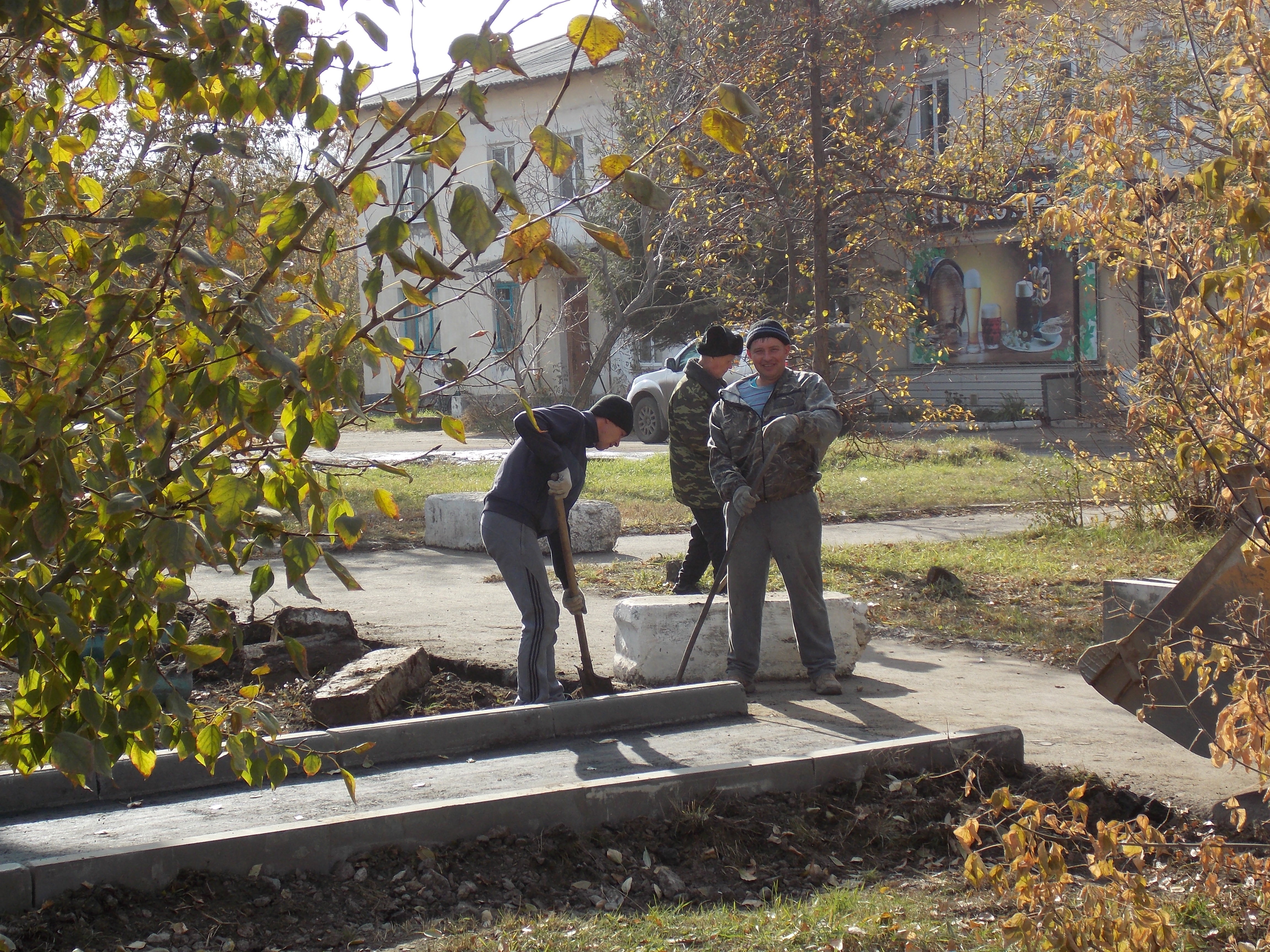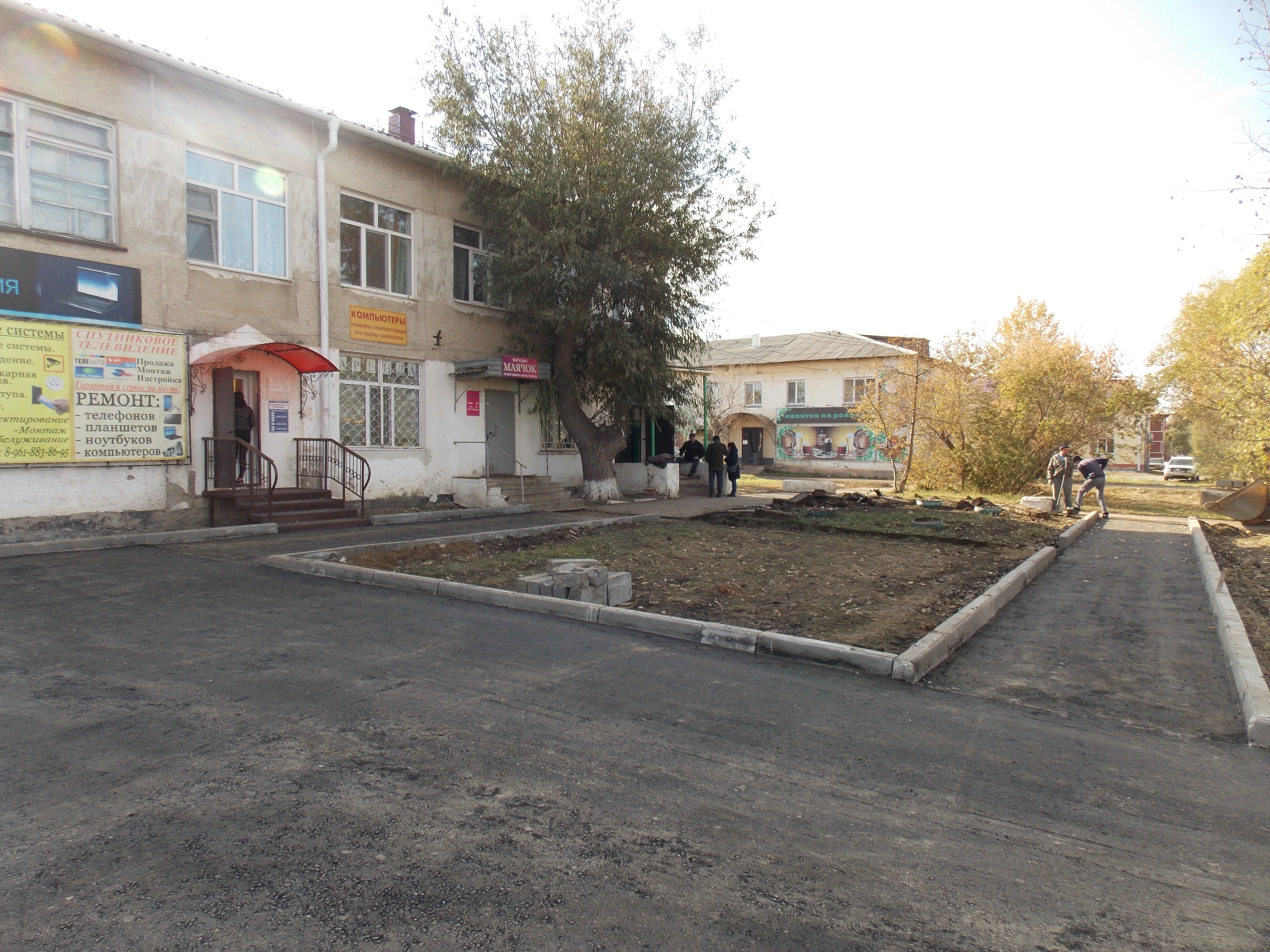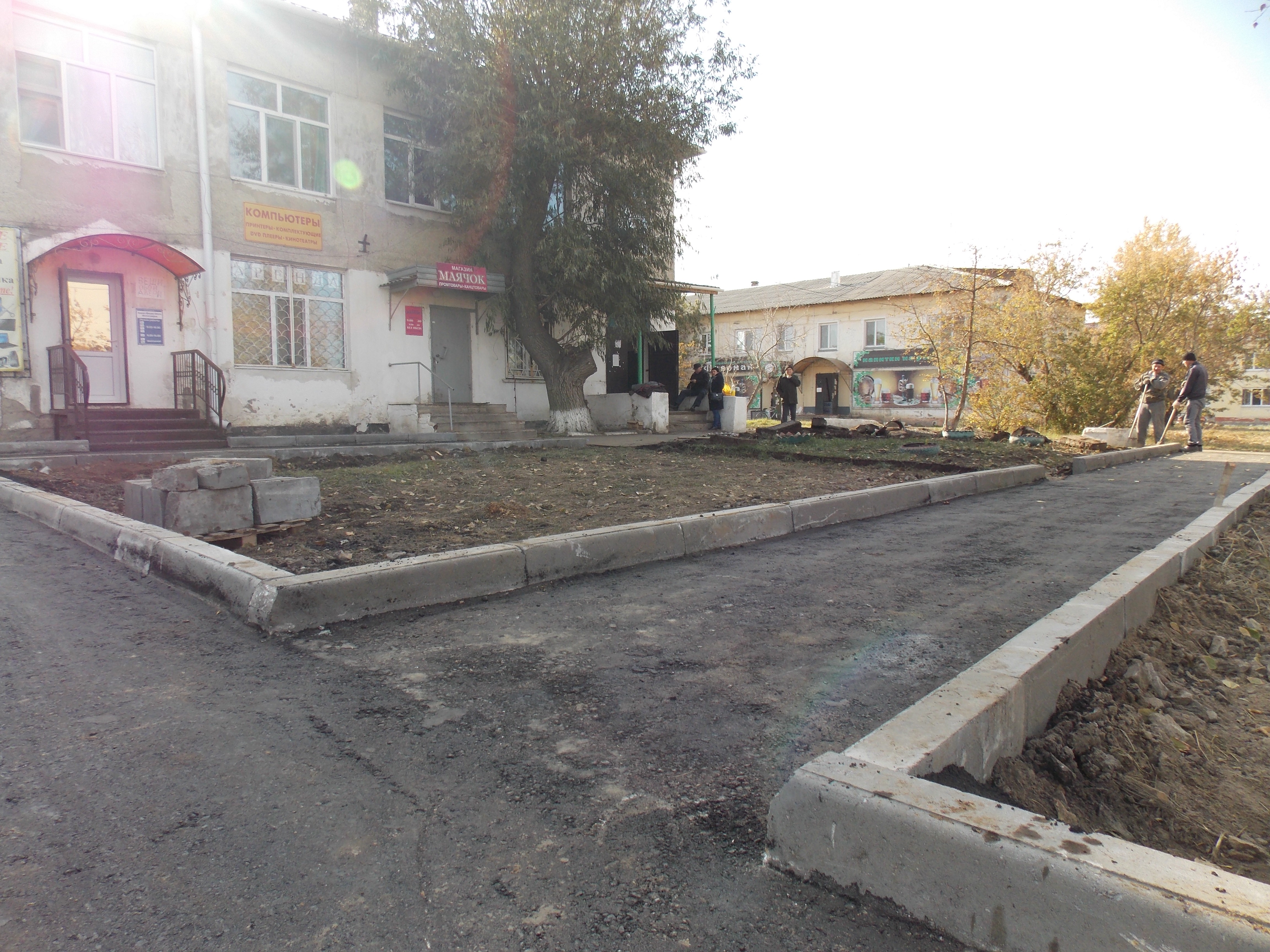 заасфальтировали. Мы побывали на этом объекте в среду, когда работники ИП «Айвазян» Николай Терещук и Ростислав Видерников устанавливали бордюры: