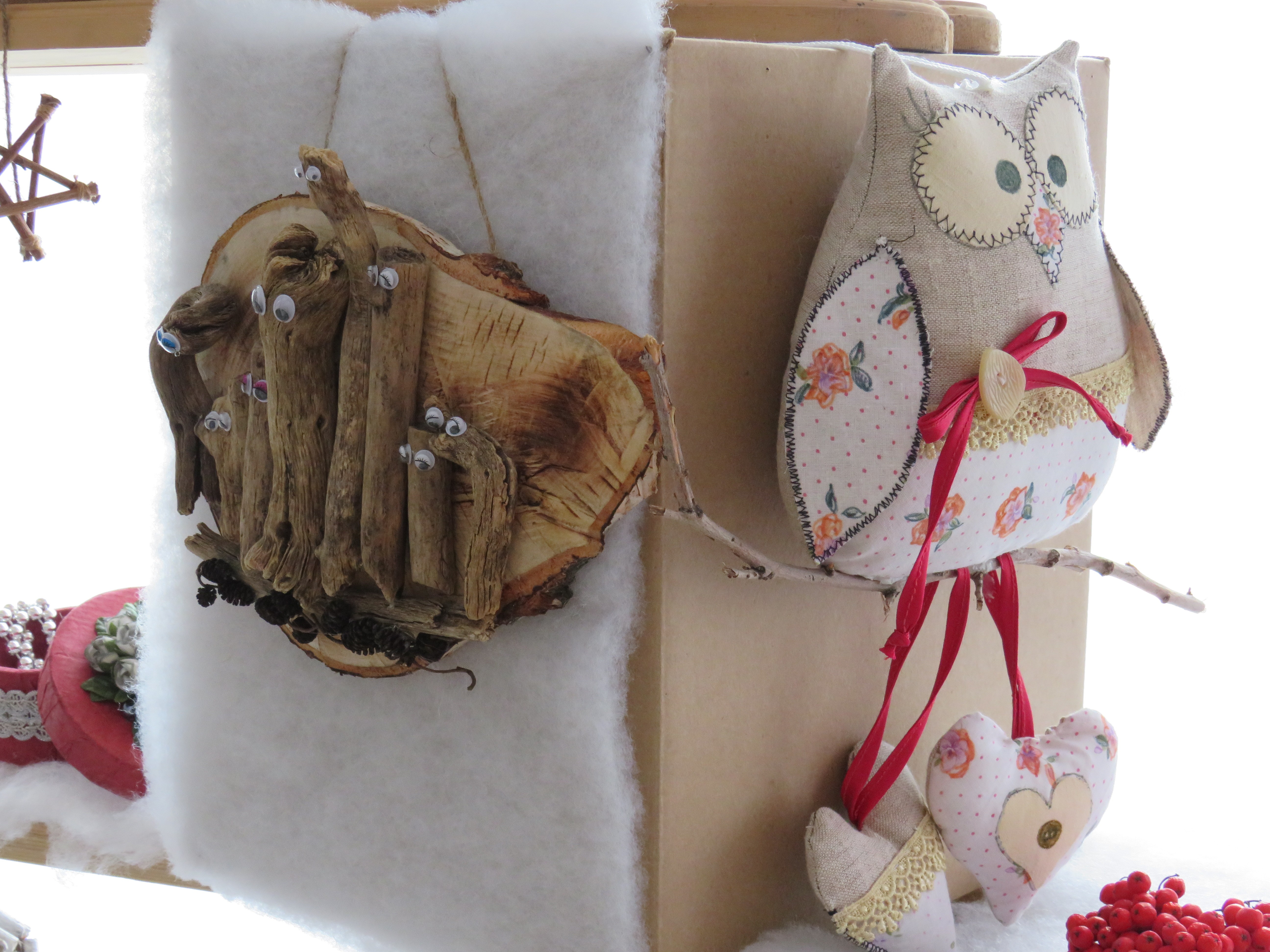 - Около года назад мы увлеклись изготовлением интерьерной игрушки и деревянных композиций для украшения интерьера. Сами ездим в лес за материалом, собираем сухую древесину, ветки. Из дерева получаются очень тёплые и оригинальные вещицы, используем их и на работе – для выставок в ДК, и делаем на заказ для односельчан.