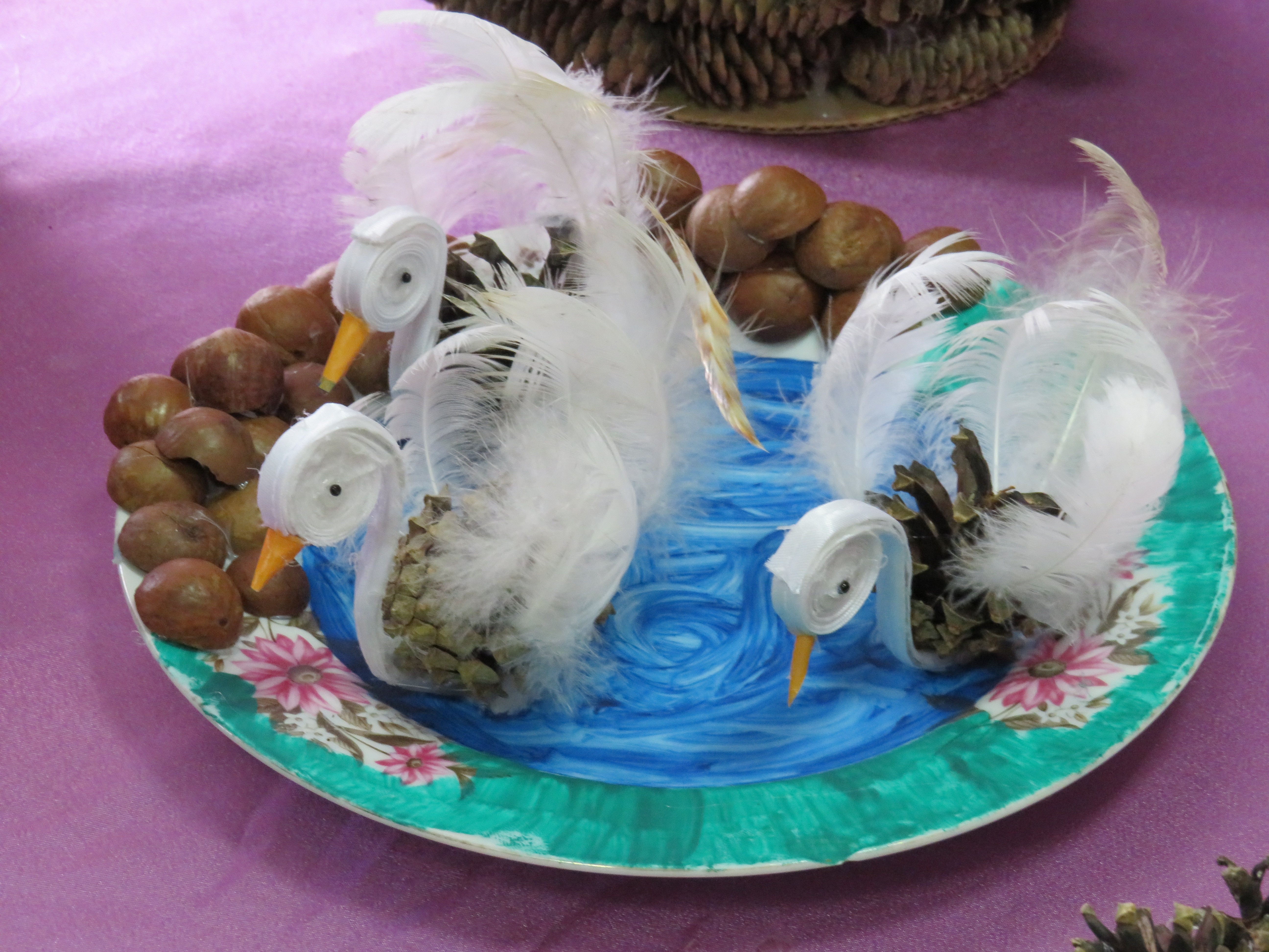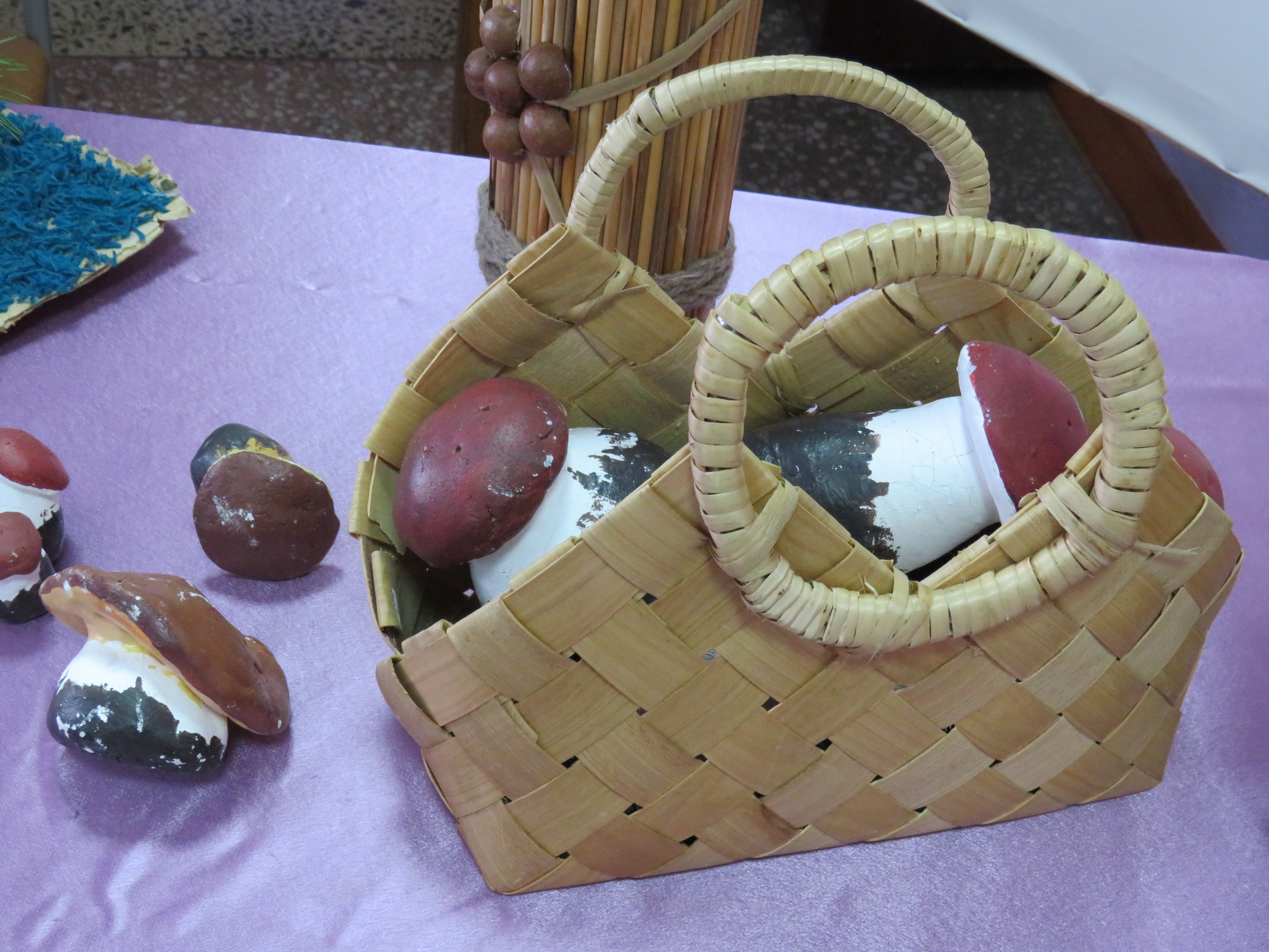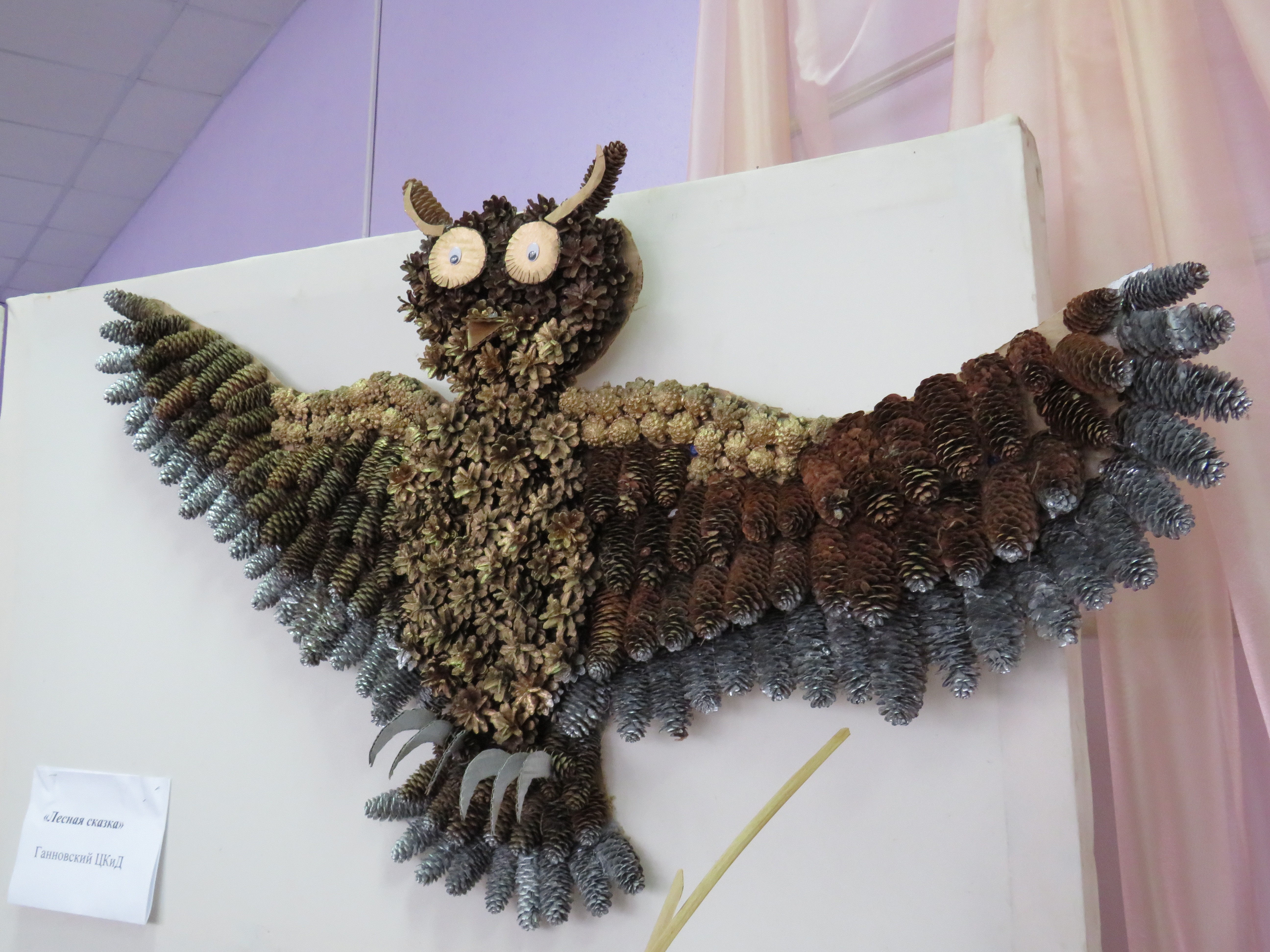 Поделками из даров леса – шишек, веточек, орехов, камыша - порадовали юные ганновцы, которые занимаются в кружке декоративно-прикладного творчества «Фантазия» под руководством Ярослава Викарчука. А воспитанница театрального кружка Дарина Бейсембаева в роли Старичка-Боровичка (на фото) загадывала всем загадки и угощала сладостями.