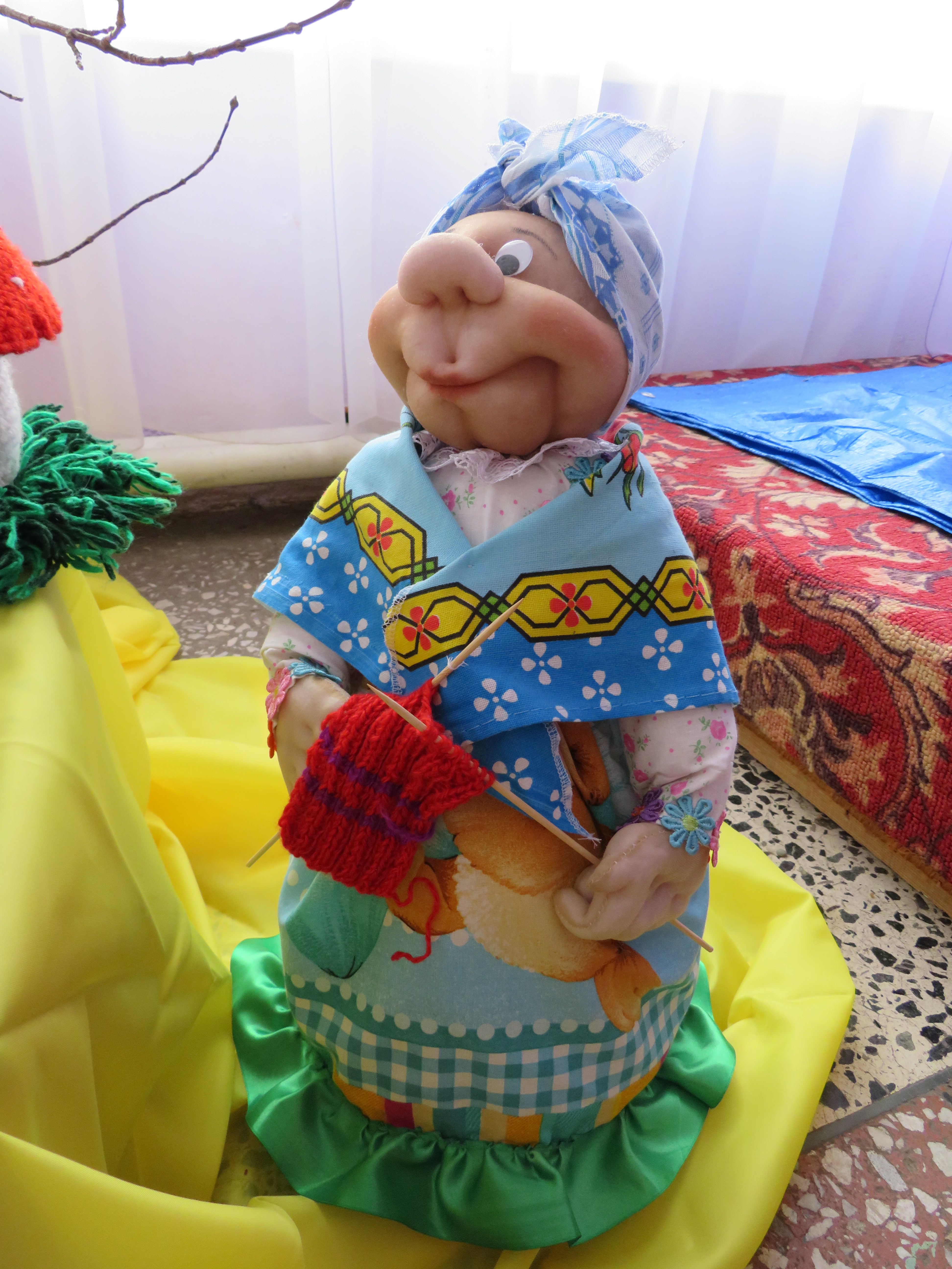 Буняковцы на ярмарку привезли целую печку, коврики из лоскутков, поделки на зимнюю тематику из бумаги и мишуры, и…сказку – её разыграли ребятишки из кружка «Фантазия» (руководитель Мария Коропова). На фото в роли старичка Дима Кальницкий.