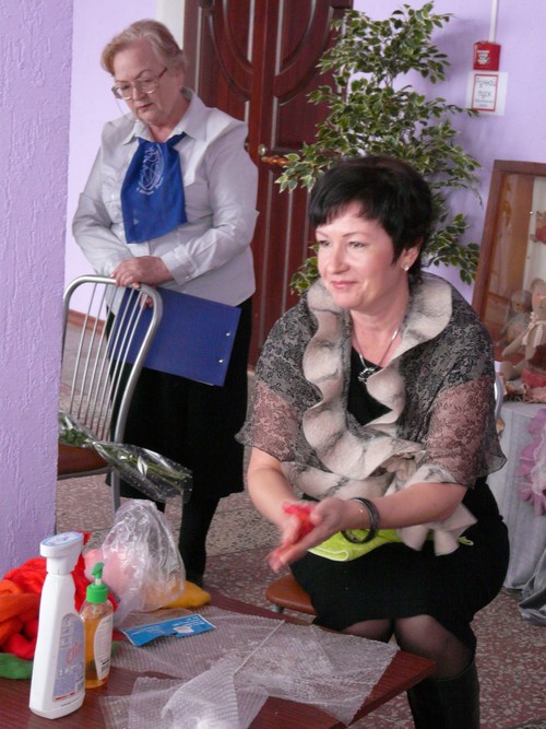 мокрого валяния из шерсти, во время которого женщины из последнего ряда, чтобы ничего не пропустить, встали со стульев и наблюдали за процессом стоя. Своего наставника пришли поддержать ребята из Социально-реабилитационного центра.