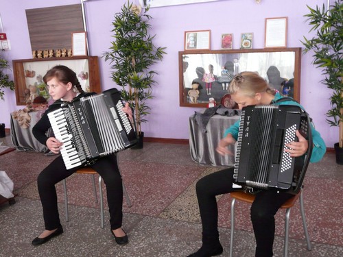 Сертификат участника персональной выставки от музея вручила мастерице его директор Н.В. Дьяченко, а на "десерт" ребята Детской школы искусств декламировали стихи, пели песни, играли на аккордеонах. Хорошее настроение зрителям подарили певцы - Нина Клименко и Игорь Москальчук.