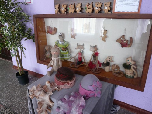 выставки: чердачные игрушки, куклы, но особый интерес вызвали броши, варежки, клатчи, косметички, шляпки, шарфики, сувенирная продукция, свалянные из шерсти. Н.В. Дербуш провела мастер-класс