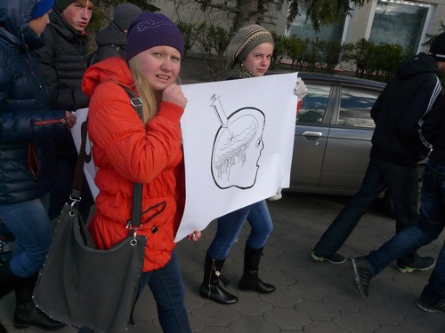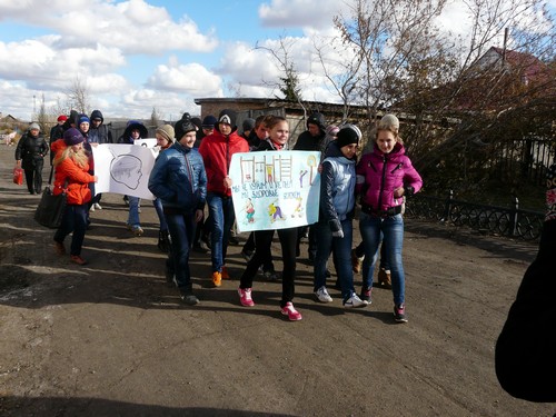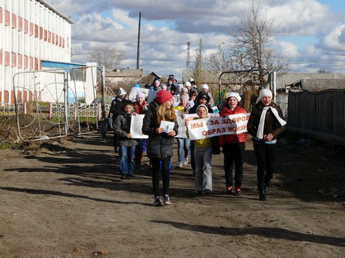 наркотиков»», «Мы – за здоровый образ жизни!» Одновременно школьники раздавали листовки и календарики, которые им бесплатно изготовили работники районного Дома культуры. Листовки содержат призывы к родителям, чтобы они были ближе к детям и другая информация, выражающая протест наркотикам. В акции участвовали школьники с 5-го по 11-ый классы, которая проходит в рамках классного часа с 7по 17 октября.