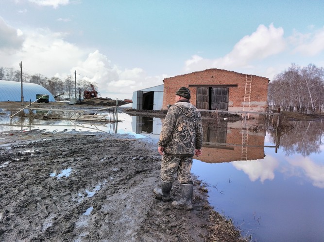- Пока рыли траншеи и воду откачивали, чтобы меньше домов пострадало, у меня склад с семенным зерном залило, не успели спасти, – Владимир Иванович показывает ангары, где похозяйничала вода. – 10 тонн семенного овса утонуло, а бурты с пшеницей снизу промочило основательно. Скоро преть начнёт зерно, а я его даже вывезти и просушить не могу, с территории не выберешься. Не знаю теперь, что с посевной будет: поля залиты, сеялки и бороны затоплены, их не вытащишь. А по селу воду вроде бы приостановили.