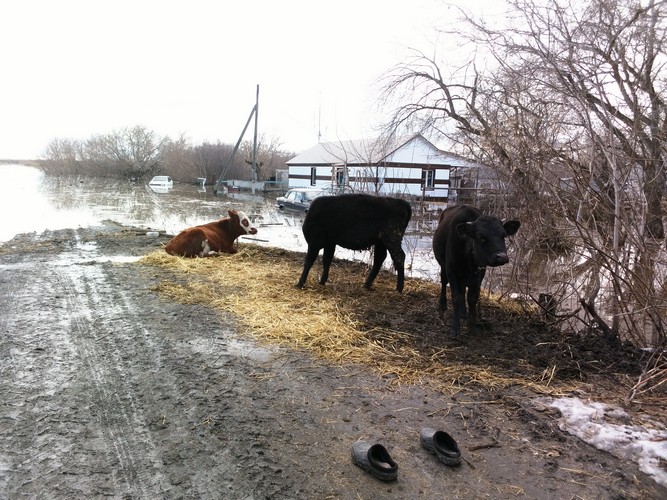 - Нет, в нашем доме воды нет. Затопило двор и сарай. Вон телята в кладовке живут теперь. А дом высокий, пронесло. Скотину еле успели спасти, вывели за дворы, на возвышенность.