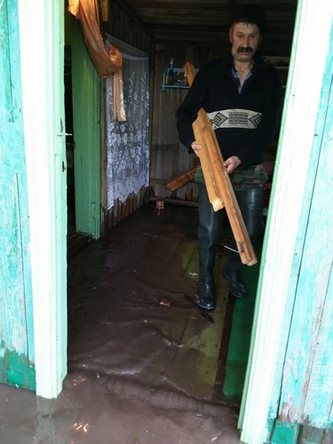 Не так повезло жителям улицы Школьной и переулка Школьного. Кроме дворов, сараев, машин, здесь затоплены и дома. Большая часть хозяев уже покинула подтопленное жильё. С трудом пробравшись через озеро, в котором едва угадывается улица, застаю выносящих последний скарб из дома супругов Темлянцевых.