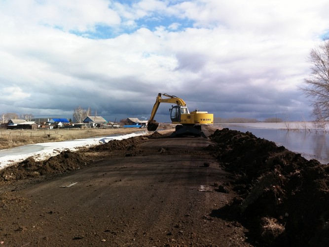 По дороге в Побочино попался экскаватор – он работает на объездной, перебрасывает землю с одной стороны дороги на другую, создавая защитный вал перед селом. Побочино – одно из немногих сёл района, где нет подтопленных домов. Миновало подтопление ещё Благодаровку и Ганновку.