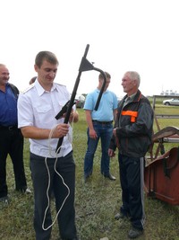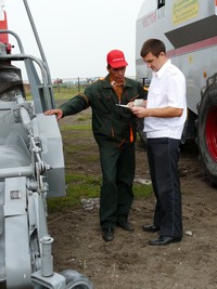 Осматривая технику и давая команды выполнить то или иное действие, начальник инспекции Гостехнадзора Одесского района Ю.П. Тарасенко то и дело поднимал большой палец руки вверх, подтверждая тем самым оценку "отлично", а возвращая документы, каждый раз жал руку комбайнеру. Даже после проверки на загрязнение окружающей среды самого старого из выставленных комбайнов - "Енисея", его хозяин - А.П. Синчук из КФХ В.И. Шефера - ведущий инженер Д.Ю. Холод доложил: