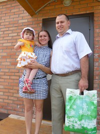 Экскурсия по квартире. С особым вниманием и волнением осматривает ее молодая семья Кондратенко: Евгений Леонидович - офтальмолог, его супруга Екатерина Олеговна - педиатр-невролог. Их двухлетняя дочь Влада тоже активный участник экскурсии, которую проводит В.А. Демченко. И на вопрос главы района Валерия Николаевича, где она будет жить - имелось в виду, в какой комнате, - малышка с серьезным видом лепечет: