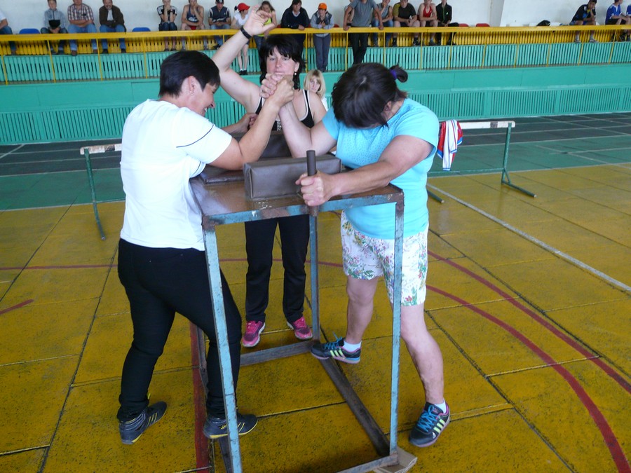 Упорно боролись на руках миниатюрные девушки и женщины в весовой категории 65 кг. Победу в нелегкой борьбе одержала опытная спортсменка Нина Шимпф (Буняковка). Поединок с Катей Горбенко дался Нине нелегко. Катя держалась до последнего и не уступала, но Нина оказалась опытней и находчивей - вовремя уперлась ногой в станок и буквально всем телом вырвала победу. Катя заняла второе место, но Н. Шимф почувствовала, что молодость наступает и в следующий раз она может потерять свое чемпионство. Третье место заняла Ольга Грабарь (Благодаровка).