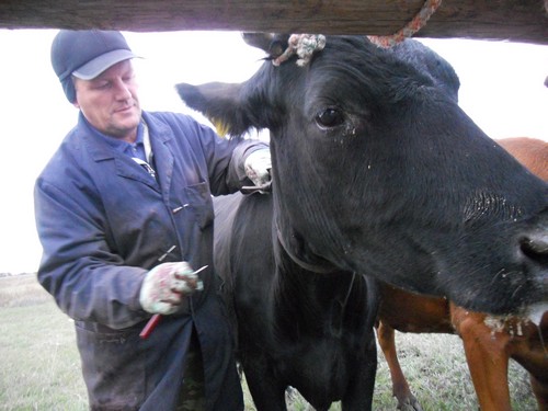 - В пробирки набираем кровь для анализа на бруцеллез и лейкоз, из так называемого пистолета, или инъектора безыгольного, внутрикожно ставим пробы на туберкулез – это как реакция Манту, - рассказывает ветеринарный врач Владимир Викторович Даниленко, он живет в Благодаровке, а ездит на работу в районный центр. – После обработки оповещаем сельскую администрацию о тех, кто привел скот, а они уже делают выборку жителей села, которые не пришли сегодня. Данные о них мы передаем в Россельхознадзор, и специалисты этой службы накладывают на нерадивых владельцев ЛПХ штрафы. И, конечно, им нельзя сбывать свою продукцию, они не получат субсидии на молоко…