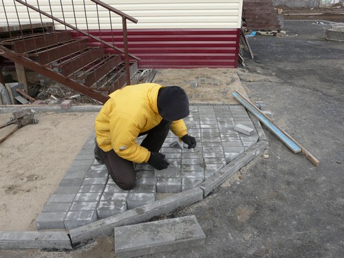 Сейчас вокруг здания детского сада идут работы по благоустройству - строители укладывают тротуарную плитку.