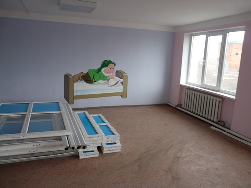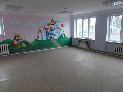 Помещения внутри полностью готовы. На стенах красуются яркие рисунки известных сказочных персонажей. На кухню завезено новое оборудование.