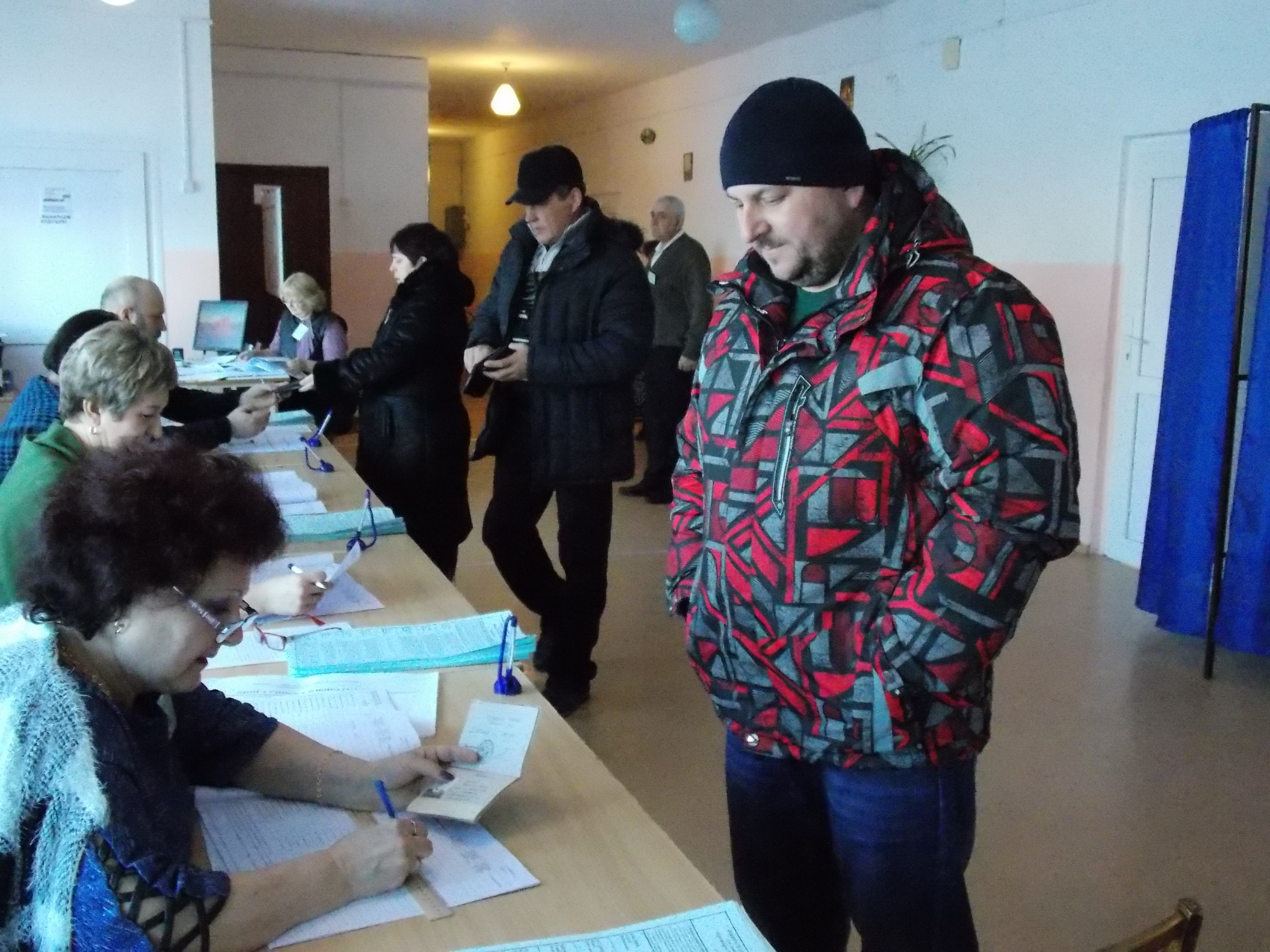У входа предъявляю наблюдателям и председателю комиссии документ об аккредитации на выборах, который выдала нам Областная избирательная комиссия. Журналист побеждает избирателя. Делаю несколько снимков и беседую с членами комиссии и наблюдателями. У всех хорошее настроение.