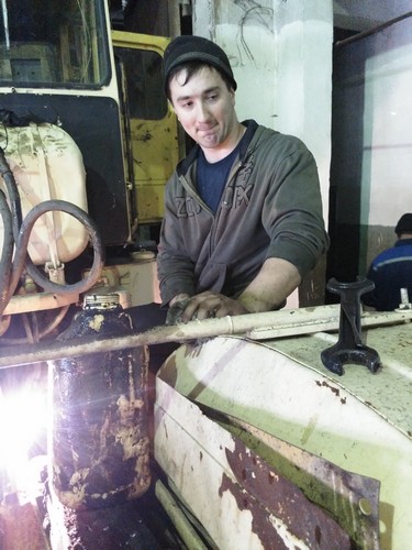 - Уходил отсюда два раза, хотел счастье в Омске попытать, и всё равно в деревню тянет, - смеется Антон. – Сказали, что в последний раз меня на работу здесь берут. Сейчас работаю на току, всю зиму зерно отгружал, то на реализацию, то людям, пайщикам. Приходится и на погрузчике, и на тракторах ездить. Сейчас «Белорус» ремонтирую, вода в картер пошла, заменил переднюю подушку двигателя, отшлифую головку ещё и снова на зерноток вернусь. А в перспективе хочу подучиться, получить категорию и пойти на К-700 работать, как брат.