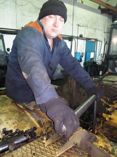 Массовый ремонт техники в Благодаровской МТМ начался с 1 апреля. В зимние месяцы рабочая неделя у механизаторов трёхдневная, а сейчас на работу вышла большая часть коллектива, и работают они пять дней. В тёплый гараж загнали три «кировца» и пять «Белорусов». Самый серьёзный ремонт в этом году – на К-700, на котором работает один из лучших молодых механизаторов хозяйства Роман Сиденько. Этот «кировец» ему дали три года назад, техника старенькая и изрядно потрёпанная, но и на ней Роман две прошлые посевные ухитрялся засеять больше всех в хозяйстве. И зимой не стоял без дела - чистил заметённые снегом дороги, но не выдержал трактор нагрузки и к весне вышел из строя.