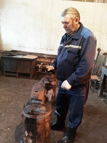 Молодые механизаторы в хозяйстве нужны, и их с удовольствием берут на работу. В этом году из «Благодаровского» уходит один из лучших работников Анатолий Литвиненко, возможно, сменой ему станут два студента Одесского сельскохозяйственного казачьего училища, которые сейчас проходят практику в хозяйстве. Но основной костяк коллектива, конечно, старожилы. Николай Иванович Нелепа, например, трудится здесь с 1973 года, называют его не иначе, как мастер на все руки. Он и механизатор отличный, и механик хоть куда, а ещё и кузнец по совместительству. Застала я его как раз в кузнечном цехе.