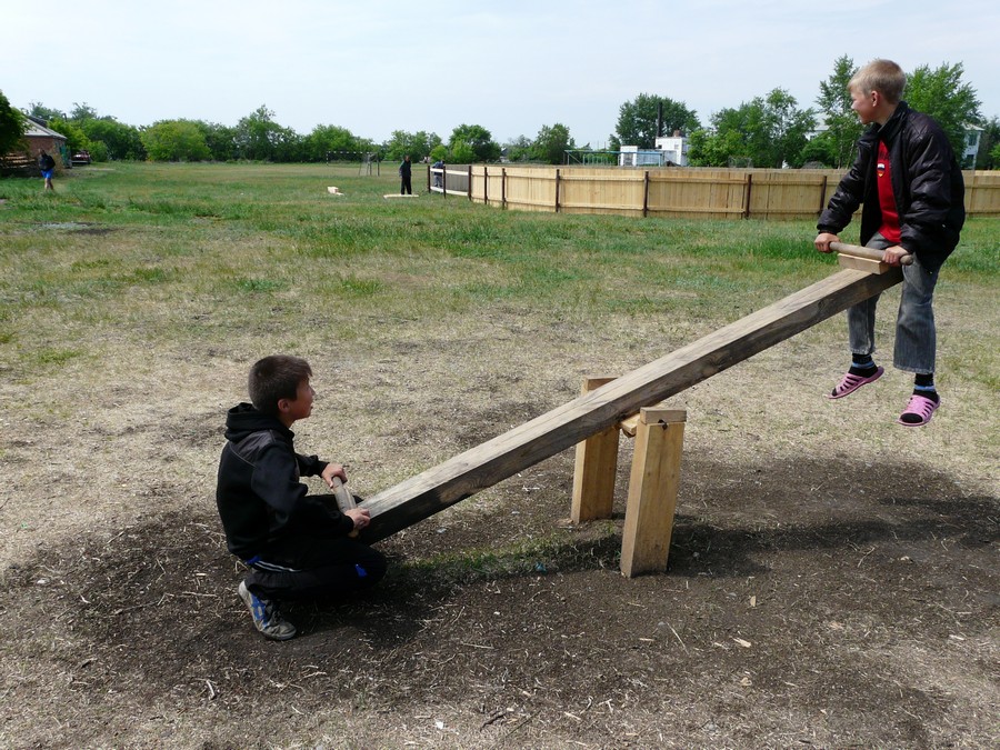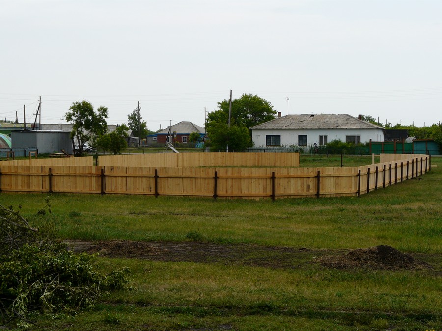 Там и сям лежат кучи выпиленных деревьев. По словам В.В. Юрукина, скоро этот мусор будет вывезен. На стадионе вдоль двух сторон ограды высажены елочки и дубки. Отстроена новая детская игровая площадка с качелями, песочницей и другим игровым оборудованием.