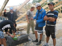 - Меня постоянно консультируют прораб Николай Сергеевич Ляшко и специалист отдела строительства администрации района Наталья Петровна Локтева. Сейчас я слежу за креплением крыши. Делается ямка, заливается бетоном с кирпичной кладкой, и к ним проволокой крепятся брусья - на языке строителей называется такое крепление мауэрлат. Вот это, видите? - и она показывает мне конструкцию.