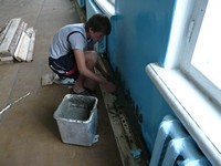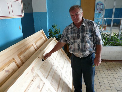 покраске. Помогают школьники. Некоторые окна будут заменены на пластиковые, но их пока еще не привезли. Трубы отопления опрессованы, то есть по ним пускали воду, чтобы увидеть, нет ли где протечки.