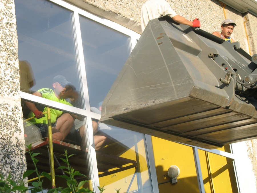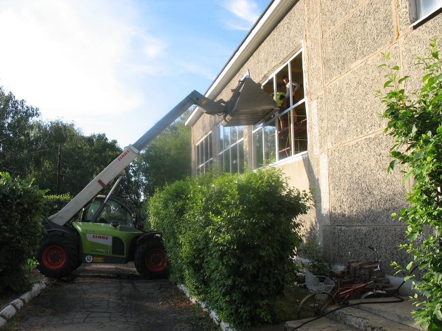 дневное освещение проблемы не решало. Теперь здесь ставят большие светлые пластиковые окна. Окна ставит за свой счет фермер В.М. Ярошенко, к которому обратились за материальной помощью учителя физкультуры и директор школы. С помощью погрузчика, окна ставит бригада из местного населения. Всего на три окна ушло 120 тысяч рублей (вместе с работой) . На окна устанавливаются специальные сетки (три штуки) общей стоимостью около 15 тысяч рублей