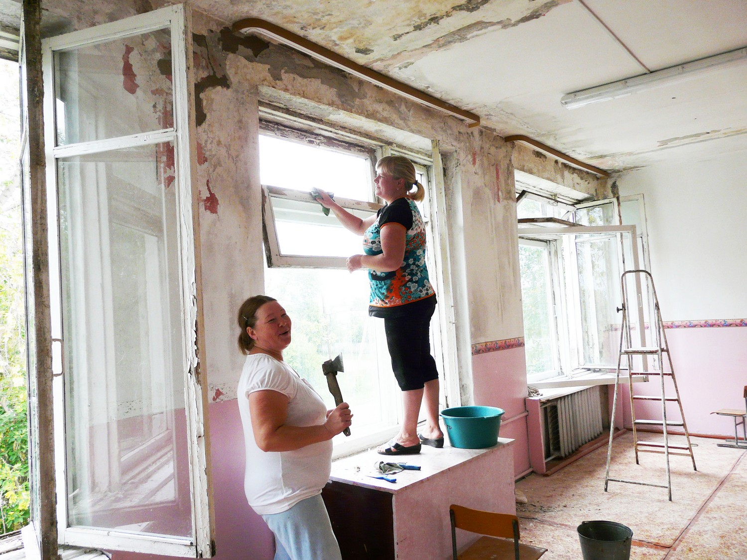 Родители собрали деньги на краску, потолочные карнизы.