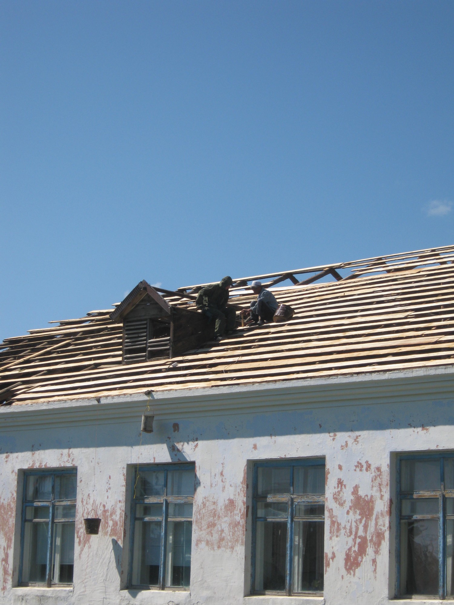 - Для покрытия крыши требуется более двух тысяч квадратных метров профлиста. К певому сентября мы должны справиться с ремонтом.