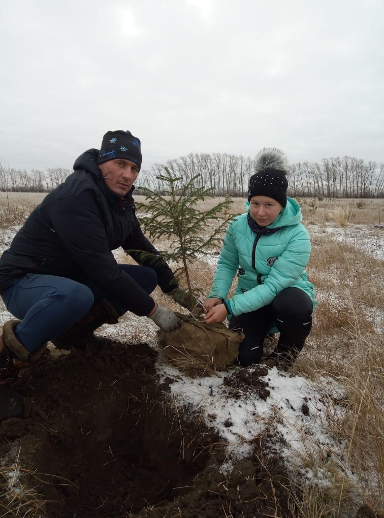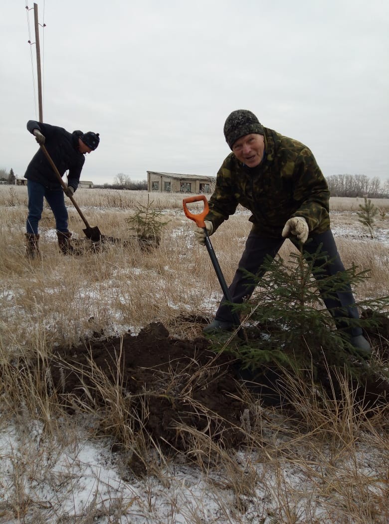 В конце прошлой недели, как раз перед морозами и снегопадом, ещё 42 ёлки были высажены возле будущей лыжной трассы. Посадочный материал предоставил Александр Михайлович Локтев, а на субботник по озеленению вышли Д. Уразов, С. Кальва (на фото), И. Будник, А.Донец и школьники Юля (на фото) и Андрей Девкины.