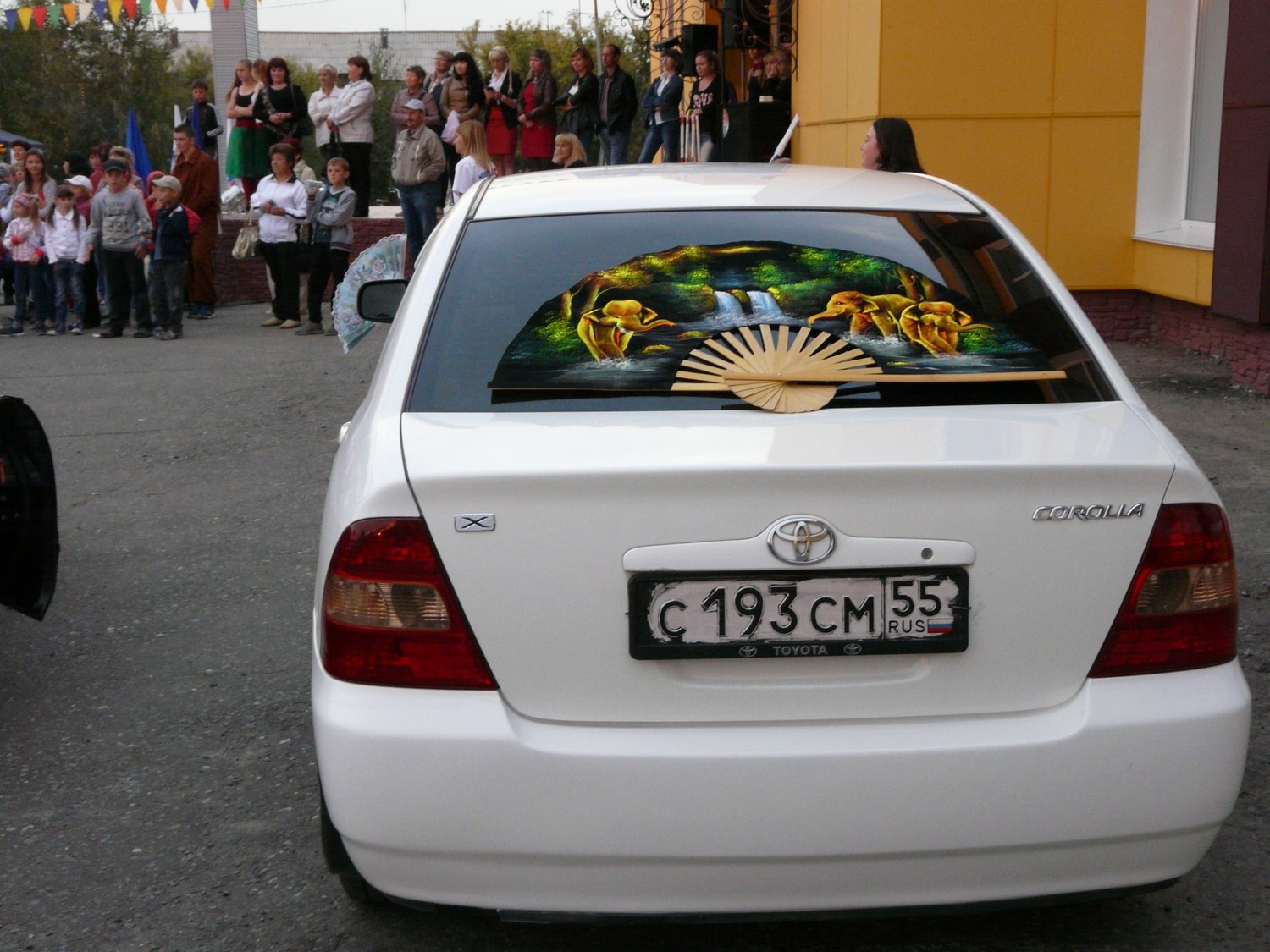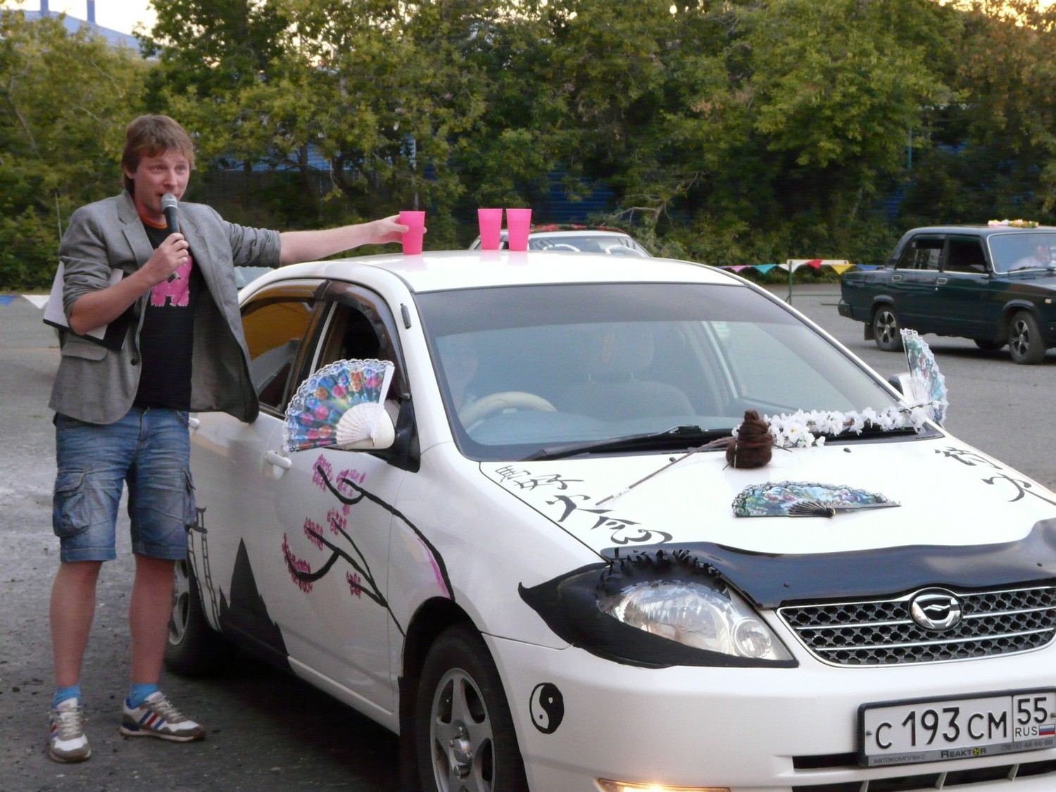 Дело в том, что, например, "Тойота" Оксаны Озинковской из Одесского была расписана японскими иероглифами, а боковые двери - пейзажами страны восходящего солнца, на капоте и на заднем стекле красовались веера, веера были прикреплены и на боковые смотровые зеркала, в фары были воткнуты искусственные ресницы, а на дворники навешаны цветы сакуры. Перед тем как покинуть салон автомобиля, к большому удовольствию болельщиков, Оксана выстрелила из хлопушки.