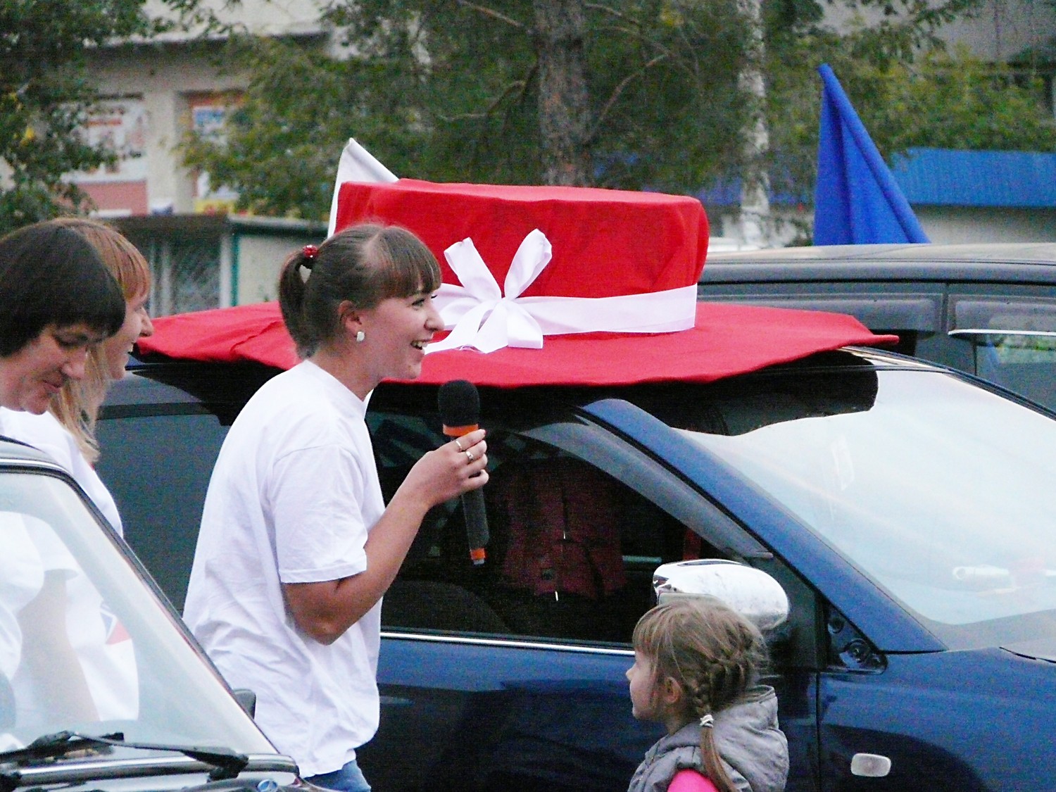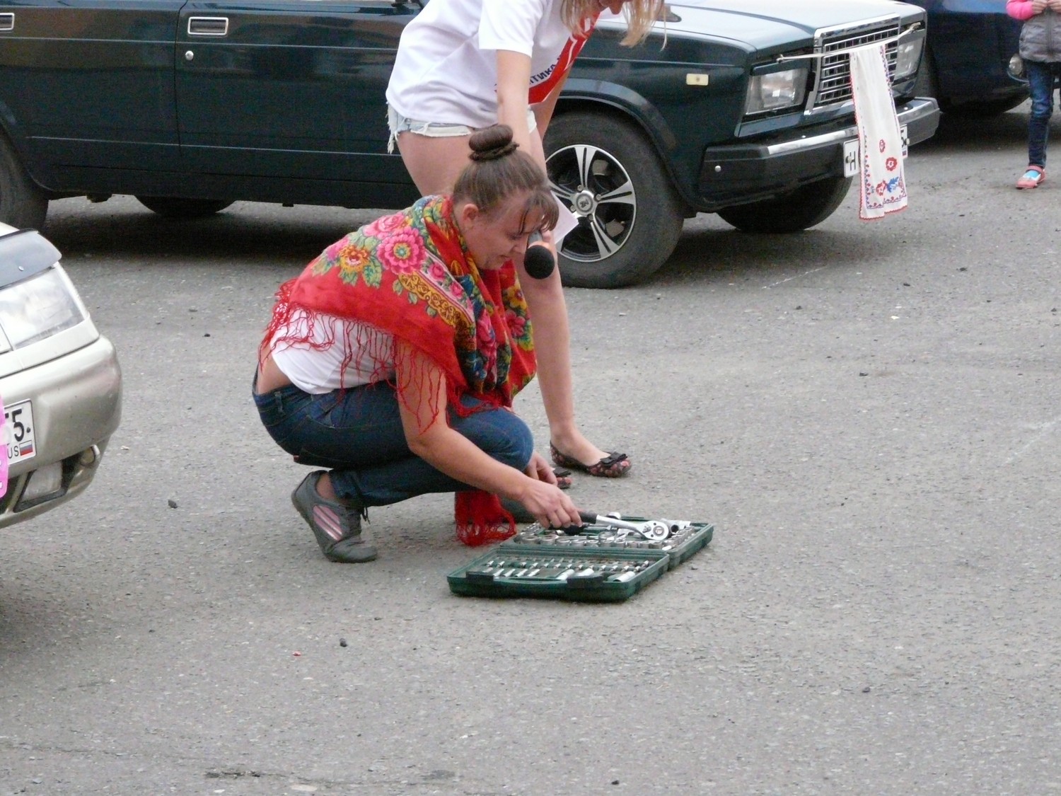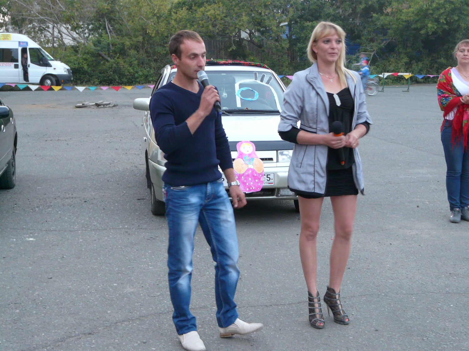 На площади, перед районным Домом культуры, наряду с леди на автомобилях, в предвкушении необычного и интересного собрался народ всех возрастов. Причем, как ни странно, больше всего было женщин. Ведущий из города Омска приступил к делу. Одним из конкурсных заданий была презентация - визитная карточка конкурсанток. Женщины рассказывали о своих автомобилях и о себе. Можно было услышать такие выражения: "дорога будто подиум", "я езжу аккуратно и ответственно", "моя десяточка, моя ты ладушка", "видна душа и красота машины", "мое авто горделиво летит по трассе", "моя жизнь - это движение". Да что там говорить, поэты просто отдыхают. Все леди справились с заданием блестяще. Так же, как с заданием провезти на крыше машины три стакана с водой.