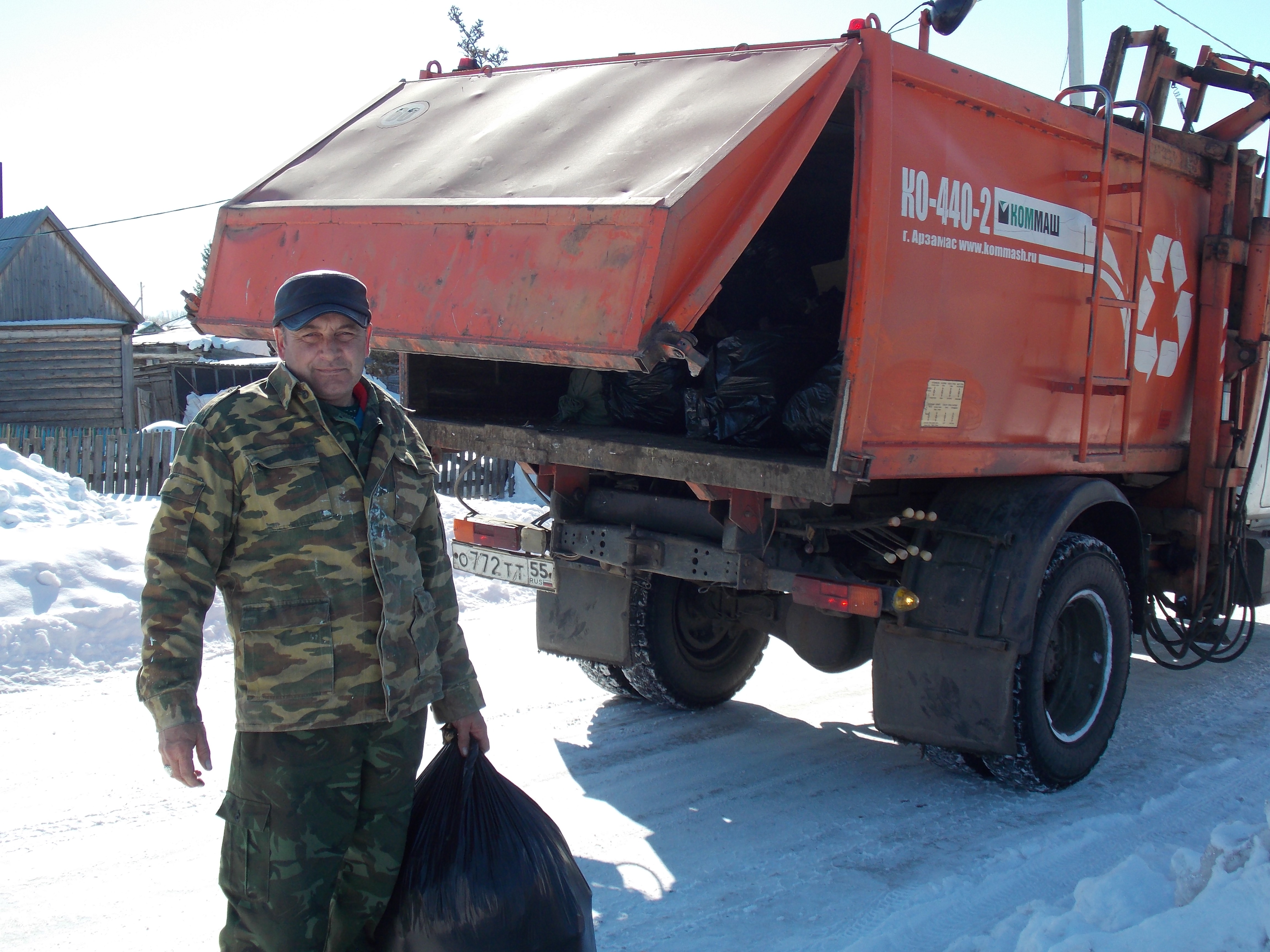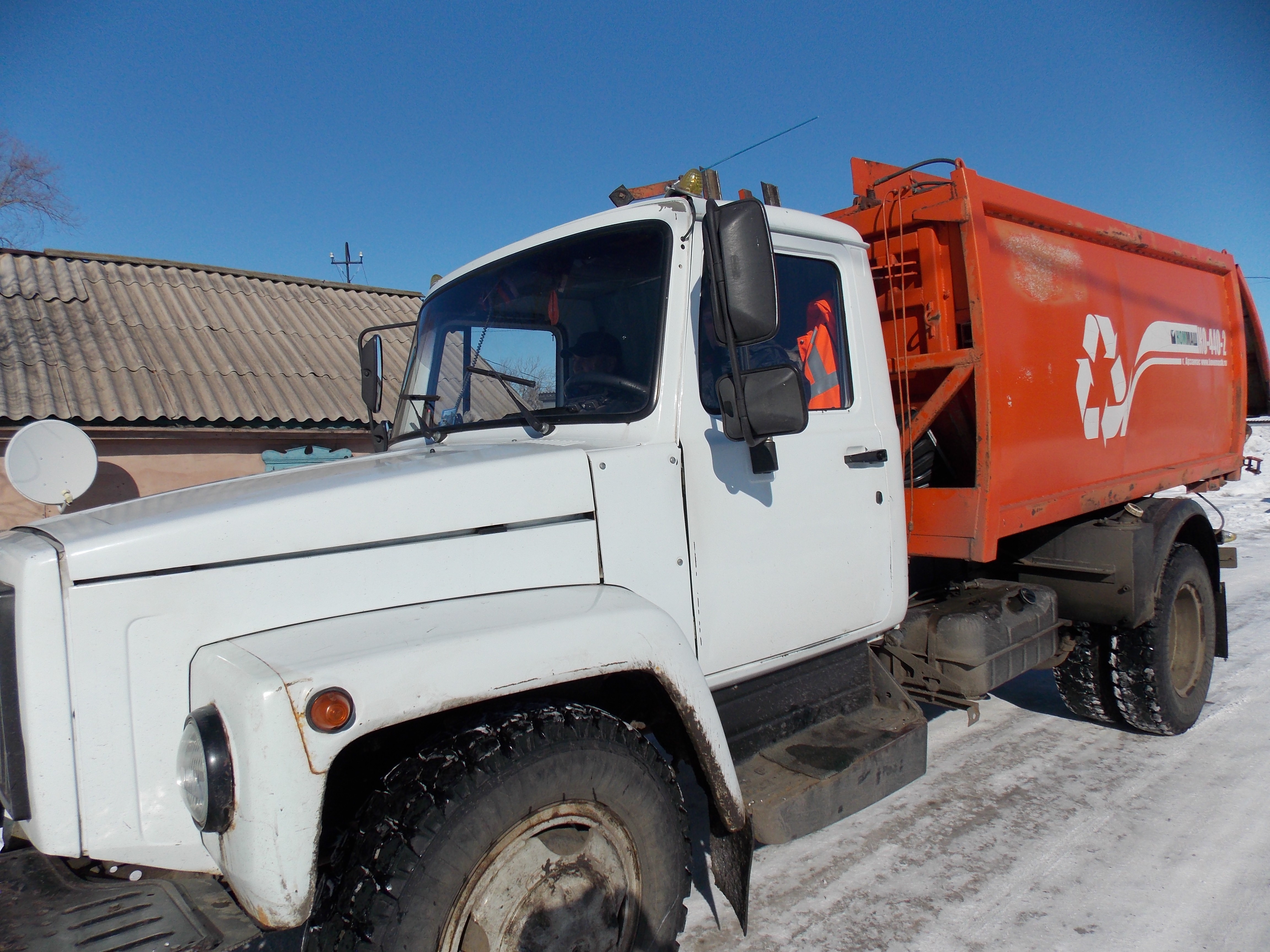 Ежедневно ярко-оранжевый «ГАЗ» наматывает километры по селу, а работающий на нём экипаж собирает мусорные мешки и опустошает контейнеры. Двух улыбчивых рабочих по вывозу мусора - Сергея Викторовича Деника и Андрея Юрьевича Алексеева знаю давно, не раз приходилось сталкиваться с ними, когда ещё работала на телевидении. Помню даже первые