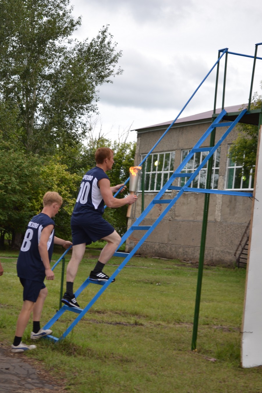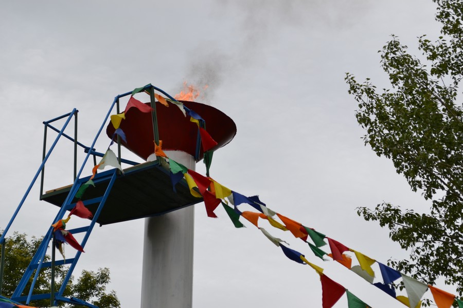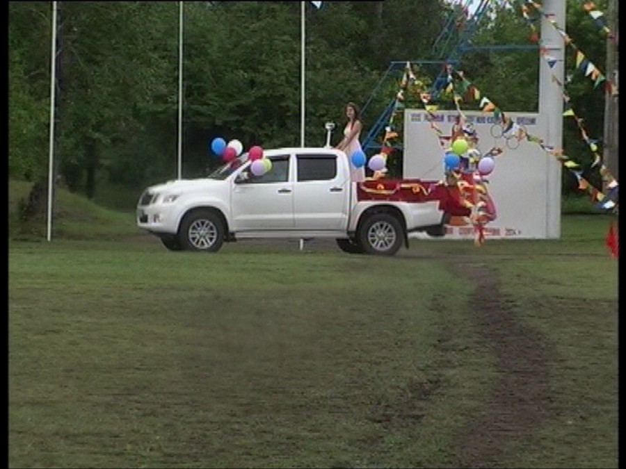 В белом внедорожнике-пикапе на стадион прибыла Королева спорта - активистка,отличница, спортсменка Яна Бойко. Огонь спартакиады несли и зажигали чашу Юрий Ласьков, Сергей Циглер, Евгений Виб.
